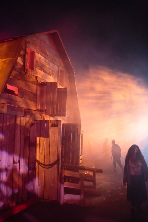 That would be Walking Dead this year! That house was good, but not as strong as Evil Dead or Cabin in the Woods (I thought). But it really depends on each time you go through any house if you get all the scares or have terrible timing throughout. Sometimes for example, Werewolf was awesome... You caught every effect and plenty of good scares. Other times, you may miss almost everything. So it is always worth trying a house out 2-3 times, at least, before you come to a conclusion. But Walking Dead was themed very well and had some great parts throughout. My only issue with this house was all the light leak above as you walk throughout the house... It made it feel a bit less "believable". Other houses had roofs and other stuff that blocked you from looking up and seeing the roof of the building (which I prefer). Others may have been the same, but this is the one I noticed it each time so it bothered me a bit.