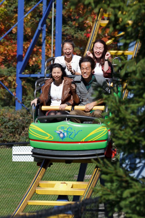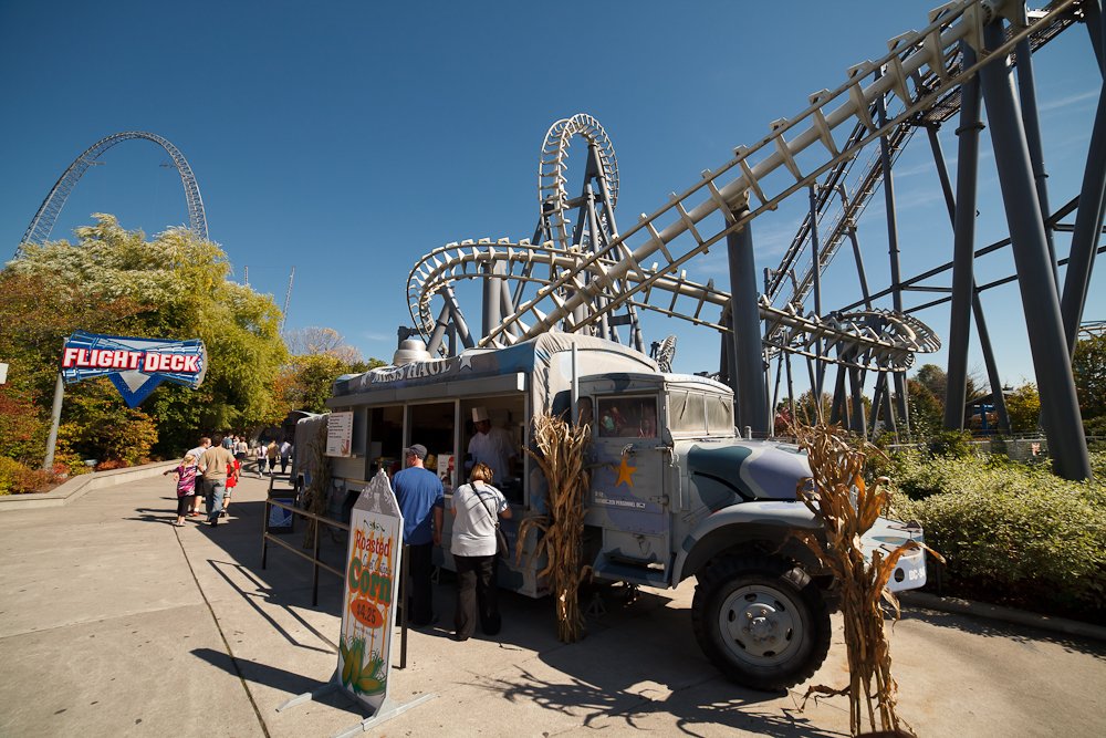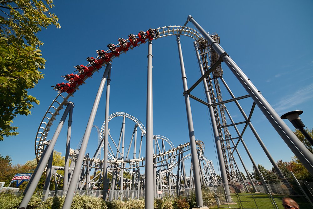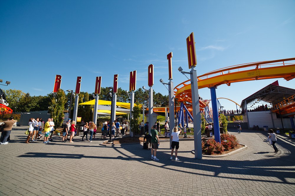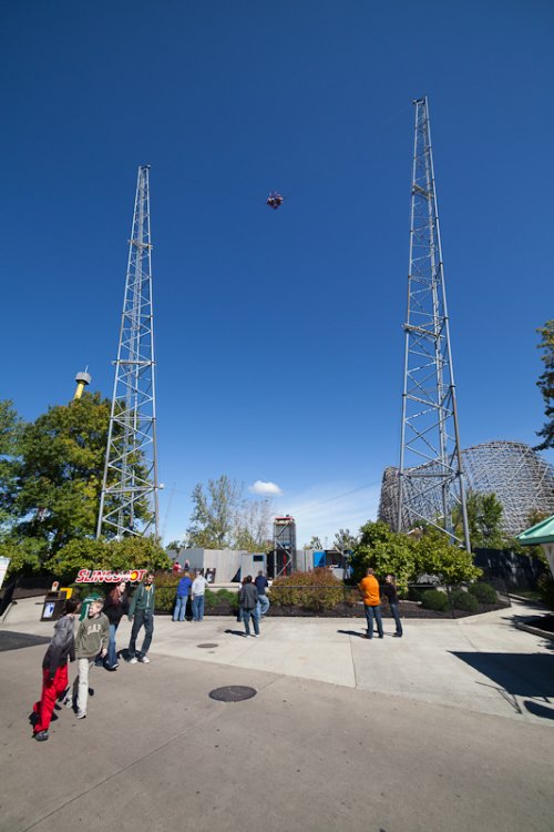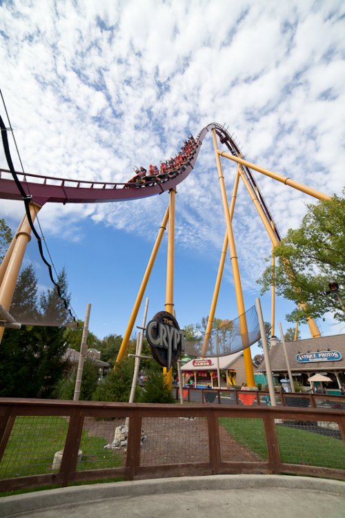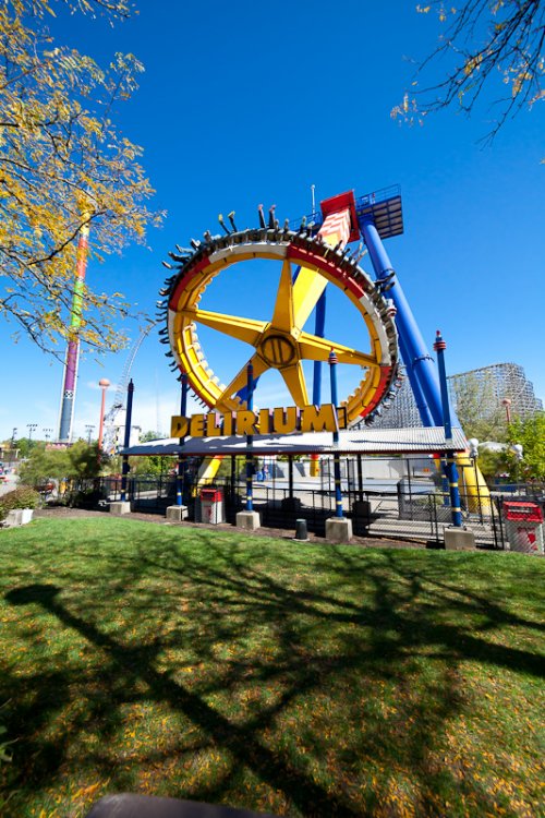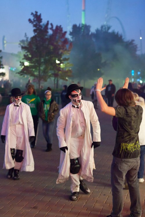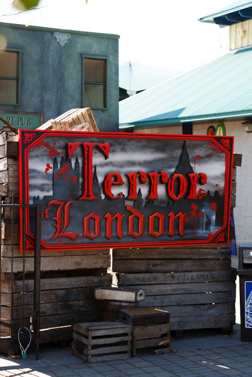 CW throws an excellent event, one of the best ones I have been to outside of HHN. Although the park lacks good rides (besides the obvious), it is a really well kept park and we enjoyed our time there a few weeks ago. I must say, I underrated Behemoth going into it. I always thought Diamondback looked much better, and always a big fan of that ride. Behemoth exceeded my expectations though, and I much prefer it. For the Haunt we planned on getting Fast Lane passes, knowing how busy this park can get. Luckily, we hit every house within the first hour and a half, no wait for any of them. We also repeated a few along the way. The park lacks scarezones, but the houses make up for it. Very well done, excellent scare-actors. Was suprised just how well done "Cornstalkers" really could be, along with "Club Blood". The CP/KI versions are not nearly as good. Can't wait to make it back next year for Leviathan and the Haunt next year as well. Higher resolution images can be found at Flickr page: Main Gate Fall colors were apparent at the park. It was beautiful all over. Did not ride. Helix of death... A nasty kink in there somewhere. Star of the park. Surprised how short the queue is. Torture Device. Did not ride Flight Deck either, although walk-on all day. Don't waste your time. Why the name change from Wilde Beast to Wild Beast? Wild Beast I suppose. Meh. Saw many people taping at this park. As well as riding with backbacks, glasses, etc... Total opposite of any CF park in the US I have been to. If you look to the left of the girls head, you will see a bee. They were everywhere at this park. It made me laugh to see this picture when I got home. Awesome house. Nice midways throughout the park. My only real photo of this ride. Lighting was terrible at this point of the day, and shooting into the sun is no bueno. Oh well, next time. And this one. This park has a nice collection of flats. Brace! I always enjoyed the SLC at GL/SFO/SFWoA... Considered one of the better models for whatever reason. I spot a bee in this picture. That is not sensor dust. Midway performer. What just happened? Ugh... Terrible show. Pyro... The only good part. One of the people by the main gate. The end!