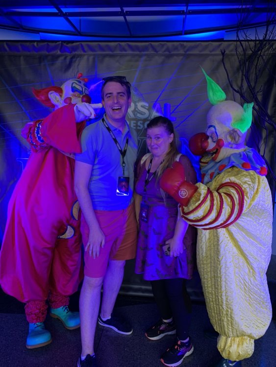 Halloween Horror Nights 29 - Opening Night Media Event! Theme Park Review was at the opening night media event of Halloween Horror Nights 29 on Friday and with 10 houses, 5 scare zones and two shows, this is a year you don't want to miss! Universal Studios Florida continues their recent trend of not having an "icon" but using an overall theme that weaves throughout the event. They did a deeper dive into the 80s theme this year and it really works and continues to be a crowd pleaser. It isn't just seen in the houses and the scare zones, it is also seen in the merchandise, food, music, etc. This is my 29th year of attending Halloween Horror Nights and the enhancements they keep making each year help to keep it in its slot as the #1 Halloween event in world. I will talk about it a little more in the pictures below, but some of the houses this year BLOW AWAY things they have done in the past. Ghostbusters is light on scares but might be the best house they have EVER done. Yeti, Us and Stranger Things are all probably going to place in my "top 10 houses of all time" list and this years Academy of Villains and the lagoon show really round off the event perfectly! Halloween Horror Nights is really the premiere Halloween event in the country. It goes for a record breaking 41 nights from September 6th through November 2nd this year and features 10 NEW houses, 5 new scarezones, 2 shows and a hoards of chainsaw killers! There are also a great selection of rides open with minimal waits throughout the park. Before we start off with the pictures, just some friendly tips if you are planning on going to the event! - The event officially begins at 6:30pm, but they almost always will open the gate at 6. If you have tickets for the day, do "stay and scream" and get a head start on the crowds running to the mazes. - If you have only one night and want to try and fit it all in, you will need to get an Express Pass or RIP guided tour. Both are *WELL* worth the money and I have done both many times throughout the years. - If you have multiple nights then you really should get the "Frequent Fear Pass" - this is a great deal and is basically an "annual pass" for the event. There are different levels of this that include various days and some even include express passes. - If you are buying a one day ticket, don't pay full gate price. There are MANY discounts out there that are available. Take a look at the TPR video of the Ghostbusters house, I can't wait to do it again! We started off the evening at Cabana Bay resort, where they are doing a "pop up" Stranger Things event for Universal Studios resort guests. Ooooh! I wonder what is up these stairs! The photo ops are fun and interactive, this will be very popular this HHN season! Anyone want some ice cream?!?! We are checked in and ready to go! We started off walking through the Anarch-Cade scare zone. It is always fun to see these during the day! At night the chainsaws have LEDs on them and look amazing! Not gonna lie.. I love the 80s arcade theming. At night these make for perfect nooks for scaractors to hide in! Waits can be very long at the beginning of the event! Ghostbusters and Stranger Things will be the hot houses, make sure you grab an express pass or plan on coming multiple nights! Stacey is NOT happy to meet the Killer Klowns from Outer Space! OMG! I love that they have classic arcade machines throughout the media event! Hmmm... I wonder what that cake is made out of?!?!?! Universal Studios really does a great job of theming their special events! The 80s theming even stretches into their "video game" preshow video! The Chiodo Bros came out to talk about their Killer Klowns From Outer Space house. Priah Ferguson from Stranger Things season 3 was there to talk about Stranger Things.. how cool! Time to start off the night with the "Us" house, based on the Jordan Peele movie of the same name.
