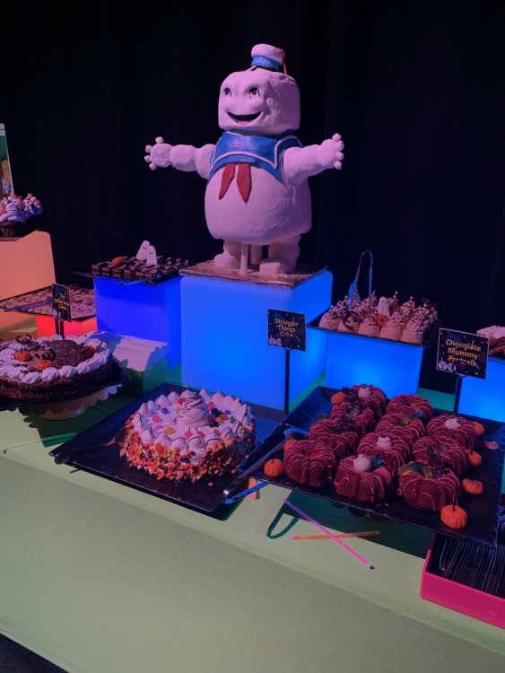 Halloween Horror Nights 28 - Opening Night Media Event! TPR was at the opening night media event of Halloween Horror Nights 28 and with a record breaking 10 houses and 5 scare zones, this is the year to be here! The theme this year is really more of an "aesthetic" (as the kids today would say) of the 80s and it stretches through many of the houses, the scare zones and even into the shops and food stands! While I still miss having an "icon" as they have in years past, this is a fun and different way to approach the event. I have been attending HHN since the very first one, 28 years ago and even though they added a 10th house, they didn't take away from the quality of any of the other houses and they all stand solidly on their own. Stranger Things is the house that will get top billing this year on most "lists" and it deserves every bit of praise. Incredibly detailed and true to the story, this is worth the wait.. whatever it is! The original property houses dreamed up by the creative minds at Universal Orlando are also top notch. Carnival Graveyard and Scary Tales might be some of the most detailed they have done in years. Everyone has their favorites for different reasons and multiple run throughs can get you very different experiences, which is why I recommend going multiple nights to make sure you see it all! Halloween Horror Nights is really the premiere Halloween event in the country. It goes for a record breaking 36 nights from September 14th through November 3rd this year and features 10 NEW houses, 5 new scarezones, 1 show and 2 roaming hoards of chainsaw killers! There are also a great selection of rides open with minimal waits throughout the park. Before we start off with the pictures, just some friendly tips if you are planning on going to the event! - The event officially begins at 6:30pm,but they almost always will open the gate at 6. If you have tickets for the day, do "stay and scream" and get a head start on the crowds running to the mazes. - If you have only one night and want to try and fit it all in, you will need to get an Express Pass or RIP guided tour. Both are *WELL* worth the money and I have done both many times throughout the years. - If you have multiple nights then you really should get the "Frequent Fear Pass" - this is a great deal and is basically an "annual pass" for the event. There are different levels of this that include various days and some even include express passes. - If you are buying a one day ticket, don't pay full gate price. There are MANY discounts out there that are available. Take a look at the TPR highlight video of the Stranger Things house and also our photo trip report of our night! [youtu_be] [/youtu_be] Checked in and ready to go for the event! I love the themed lanyards. I love being able to be some of the first ones escorted in and seeing the scaractors getting ready for their first scares! Hiding and ready to go! Getting daylight pictures is one of the best reasons to get to the event early. The first scare zone as you enter the park sets up some of the IP houses that you might visit during the night. Spoiler... there is a clown in the Poltergeist house... a LOT OF CLOWNS! I saw it hit about 120 minutes on opening night, so 65 right at opening for the Stay and Scream folks isn't bad! But at the same time you can do Carnival Graveyard for only a 5 minute wait while everyone else runs to Stranger Things... decisions, decisions... Universal Studios media events always have great food that is themed really well. First stop, the desert table! Who is going to be the brave one to take the first slice of clown cake?!!? Who is going to be the brave one to take the first slice of clown cake?!!? I love the 80s theming even at the food stations! Oooohhh! I bet something might happen here soon.... For a year without Jack as an icon, there are an awful lot of clowns... On this stage we learned all the incredibly detailed stories behind the houses from the creators themselves! Then, characters from each of the houses came out to their backdrop. OH YEAH! You can imagine the applause in the room when eleven came out! Picture time! Then off to get scared!!!!