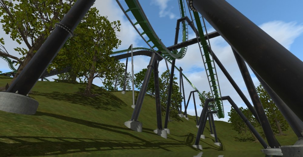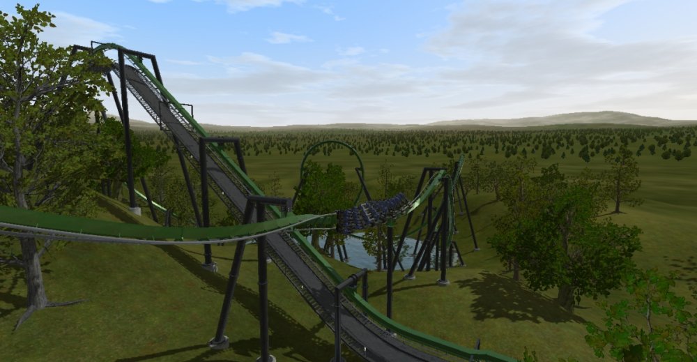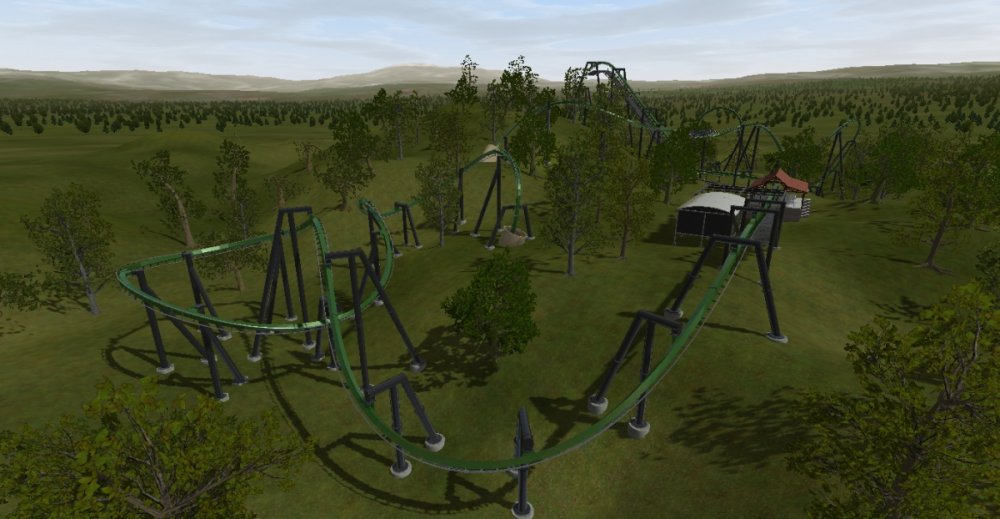 I am TERRIBLE at naming coasters, so expect more generic names from me Viper is a B&M invert that makes use of its surrounding terrain. The first drop is approximately 170 feet. Track is 3,104 feet long. Max speed is 64 MPH. 5 Inversions. Two trains. **DOWNLOAD**