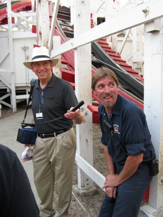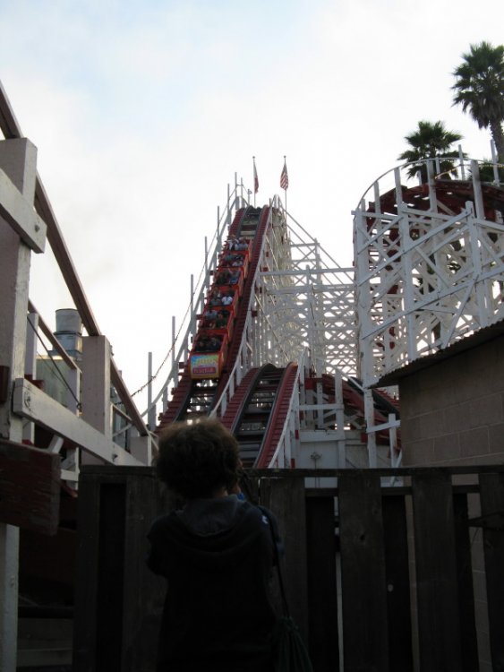 15. Day 2 - Afternoon/evening visit to Santa Cruz This was one of the parks I really looked forward too. Yes even before the beer party was announced. The setting is just perfect and the hospitality was awesome. On arrival the park was packed and I only got the credits out of the way before the beer/food/volleyball party. After that we had an awesome behind the scenes tour at the park. Thanks to the beer party I really needed to pee during the tour but luckily there was a toilet at the infield of the Giant Dipper. What a relief. On to the pictures. TPR members go crazy. A good shooter dark ride. Big mike's biggest fan. Something themed to a giant Octopussy or a mega shark. The rock 'o plane is really an insane flatride. I think I managed to do 10 spins on one cycle. Some random flatrides. ^ ^ Machinery/motor room of the Giant Dipper. The head mechanic. ^ ^ ^ On the infield of the Dipper. I feel so much safer right now. Cool upskirt carrousel shot. The bras ring thingy machine Tour started underneath the carrousel. TPR people in action. I think this was the first ever TPR volleyball match. TPR Party deck. This is the nice man that gives us the behind the scenes tour. The third coaster of the park. This coaster is only worth one picture. (sorry Josh) it didn't take long. Although there was quite a long line Some fun facts about the dipper. First off to the dipper. This place is awesome. After the relaxing morning at Gilroy this was something totally different.