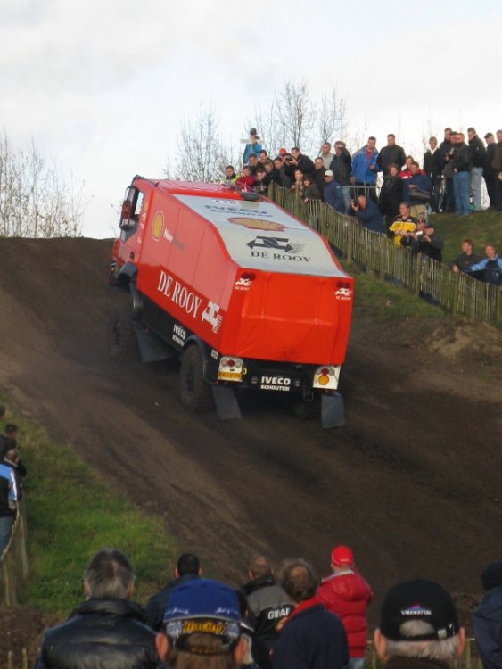 8. Hi everyone, Went to Valkenswaard last saturday to see the Pre prologue of the famous Paris - dakar rally which this year ,or actually next year cause it will be held in january, will due to the threat of terror be organised in Argentina!!!! All of the dutch and I think all of the Belgian competitors were present. The rally has three different disciplines - Motorbikes - Cars and trucks. The trucks are the most impressive of the three. The track is in Valkenswaard (close to Toverland) is partial tarmac and partial dirt track and of course we were at the dirt track given the fact that is the place were normally most of the action takes place. On to the Pics. Favorite truck picture. Thanks for reading. This truck used to be red. Once again the army saves the day... well it took an hour but they did it. He was a bit too fast and flipped over. 10 gold stars for the one who guessed it right. Trivia... What did just happen with this truck. The last corner of the track. At this point the trucks came close by so I could get a few awesome shots. OMG two truck shot. Hans Stacey won today. Those trucks are huge. Next up Trucks. It's a real classic. Towed by the army. ^ Tim and Tom Coronel ran out of fuel. My favorite picture. Airtime!! This one was awesome... short movie at bottom. In case they forget... It's that way. Zoomed. Through the hairpin. Next up were the cars. There were two quads but the other one fell off in the first corner and broke his shoulder. Could take some better pictures from this side. You can get really close to the track. First race of the day. Some modern trucks. Team De Rooij 1985 truck. First we did a pitwalk. We made it.