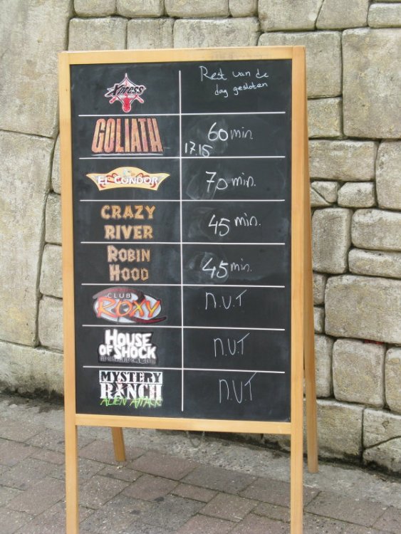 Hi everyone, Last month I visited Walibi World to celebrate their new years eve on two separate occasions. On July 23 with my sister and on august 6 with my brother. Yes it is awesome to celebrate new years eve in july/august. At night there was a DJ at the Goliath site and the evening would end with the great Sjon + Sjeffrie show + fireworks. We arrived both times around 5 pm so we should have plenty of time to do all the rides. But OMG the park was packed with lines at Goliath and El Condor up to 60 minutes but anyway we had a great time and we were very lucky with the weather. On to the pics. See ya next october Eddie. Yes that's it. Come on you can do better. Yeah set it on fire. Ohh. They tried to set the ferris wheel on fire. Happy new year. Almost midnight. Starlights Last part of the night. The famous Sjon and Sjeffrie Show. The Sky Dive looks awesome at night. Wow There he goes. We used the single riders line on Space Shot so we couldn't ride together but who cares. Suddenly the night kicks in. Like I said there was a DJ set near Goliath. Yup. The airtime on the three bunnyhops is so amazing. Thank you Six flags for making this possible. Can't get enough of Goliath. So here you go. There was a family passing by who wanted to be in this great TR too. ^ Tried to take some onboard shots. Most popular ride of the park. The crew at El Condor did a great job to entertain the public. I'm spoiling the lifthill fans. My favorite part of this ride. The SLC didn't run bad at all. We almost got run over by this train. Some kids decide to cool down. Some nice landscaping at the kids area. FOOD. The camelback is filled with ejector air. Coaster porn. See I told you. Stengel dive. watch next picture at your own risk. Back to some Goliath pics. Action Picture. There is Mr. Wok again. That makes me want to ride Woks waanzin. Ahh there is Mr. Wok. They even poured some extra footers or it was just a miscalculation. For the lifthill fans. I didn't noticed it before but anyhow for a Vekoma it's a very good woodie. There is a huge bump somewhere halfway the track. Train peeping out of the station. I haven't seen such a long line at Robin Hood for a long time. Dark clouds gather above the SLC. That first drop on Goliath is awesome. Yeah were in for a party. So this were the average lines on both nights. They are a little early to mention their haunted houses. Same spot two weeks later. July 23