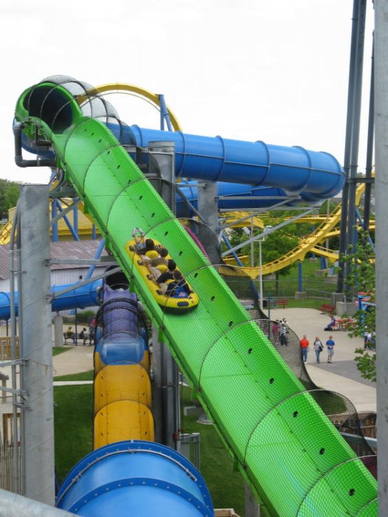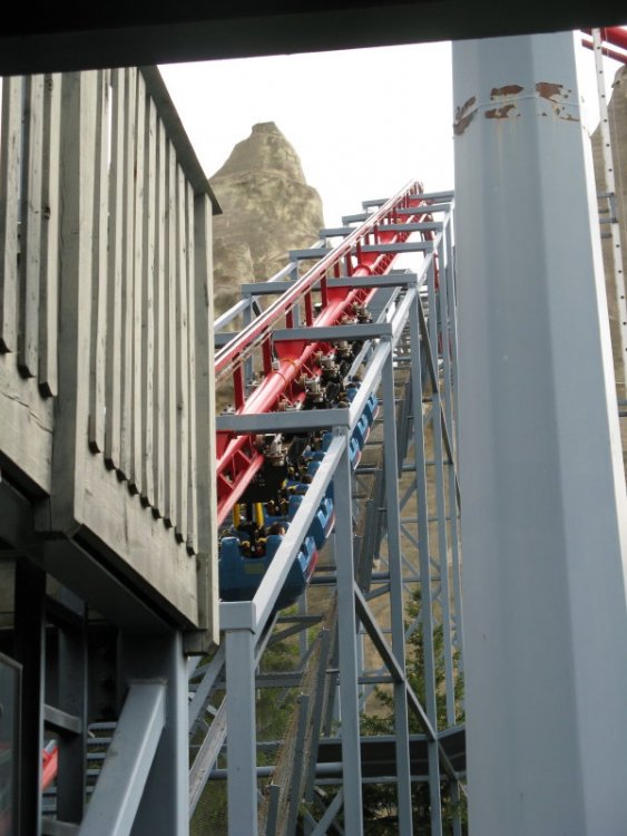 Photo TR of our 14 days of rollercoasters in the Usahansrubens replied to Groteslurf's topic in Photo Trip Report Archive Next stop was Six flags Kentucky Kingdom. Our first US Six flags experience on the trip. Bad operations all day. Pictures !!!! Seasonpass processing with an 1 hour wait. and the last one Loop First drop and it was a great ride It was my very first standup coaster Chang Restaurant 2 out of the three time we were standing in line it broke down. Deluge was very cool and wet. They were running only three trains and most of the time they were in the station. Roadrunner Express Oversized clothing?? Ferris wheel Station pic. but fun It was a bit rough Thunder run entrance Flying dutchman swing was actually standing in the belgian village ?!?! Arms up. Launch Greezed lightning But it was really rough It sounded like it was kinda smouth T2: SLC time