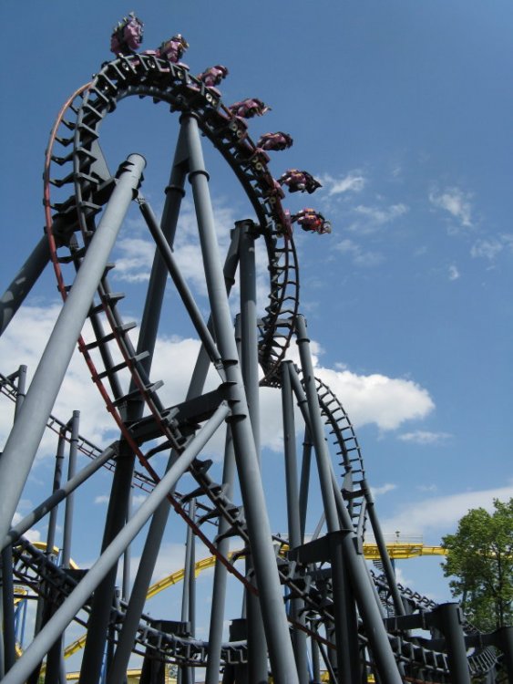 Photo TR of our 14 days of rollercoasters in the Usahansrubens replied to Groteslurf's topic in Photo Trip Report Archive Day 5, may 21 Canadas Wonderland. It was a very cold day only 9 degrees Celsius. Anyway we could do multiple rides on Behemoth cause the park was dead. The trims on Behemoth were still off so we got plenty of air especially in the back. Although they kept the last row closed. Canadas Wonderland was bigger than that I thought it would be. A lots of flats that i've never seen anywhere else. On to the pics.... Entrance Time Warp is a flying coaster by Zamperla and it was a very weird Experience. Train on first drop. Station pic. In the back of the train we got air from the top till the bottom of the first drop. Behemoth I've never seen such a flat ride part 1 Flying position Loading position It was very uncomfortable to me. The good Vortex. It seems they copied some of the ride names of KI. I've never seen such a flat ride part 2 Somebody had puked in it. Unlike the Vortex at KI this one is very good. The first part of the ride is up a big canyon. Nuff said. The Bat The fly a mack wild mouse That first drop was pretty fun. Just another credit (maybe) Mine Train by Mack I've never seen such a flat ride part 3 Although it looks very dangerous it was really nice. This was my very first Togo Stand up I've never seen such a flat ride part 3 It beat the crap out of me. The Wild Beast It was just a SLC but this one was extreme rough Flight Deck. Hey that sounds familiar It was just a SLC but this one was extreme rough Flight Deck. Hey that sounds familiar Entrance of Ghoster Coaster. The surroundings of this ride were pretty neat but the ride itself was a bit rough ^ Last coaster of the day. Extremely rough especially the last helix. ^ I've never seen such a flat ride part 4. Yeah I know I must had to wait till it operated but nobody did dare to ride it in the afternoon. (Groteslurf posted it while operating on page 5)