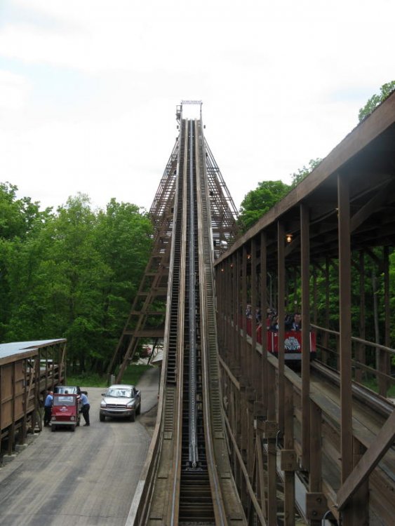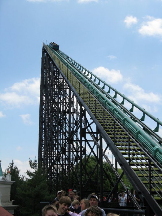 Photo TR of our 14 days of rollercoasters in the Usahansrubens replied to Groteslurf's topic in Photo Trip Report Archive So we were up for our second day of Hershey Park. Only to ride Fahrenheit. Well as the most of you will know by now it got stuck on a testrun in the cobraroll and I didn't get the oppurtunity to ride it as we were leaving at 2 o clock heading for Knoebels. Here are some pictures. It seems like such a great ride. Too bad... This was at about 2 o clock. It didn't like they were going open it up today so we were heading to Knoebels. Pulling through has started Getting the cable installed ^ ^ ^ ^ ^ ^ ^ Getting the pulley's installed a crane showed up at around noon. After a few hours talking... When it was testing I already thought it wass crawling through that cobraroll After a few seconds I saw that train we got send away by some park cops. But hey what the heck is that. I can't wait for it to open. After two seconds we got in line. Well that line isn't to bad. Queuing up before opening of the park.