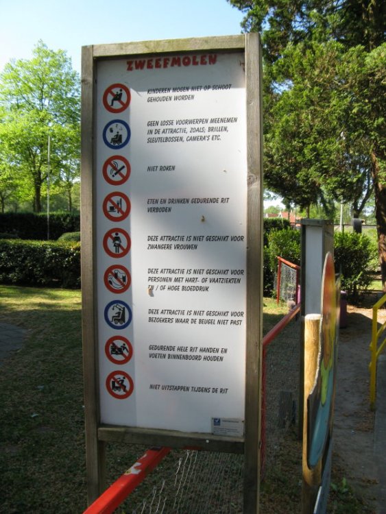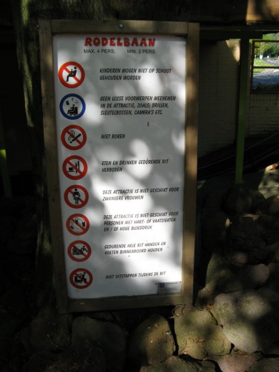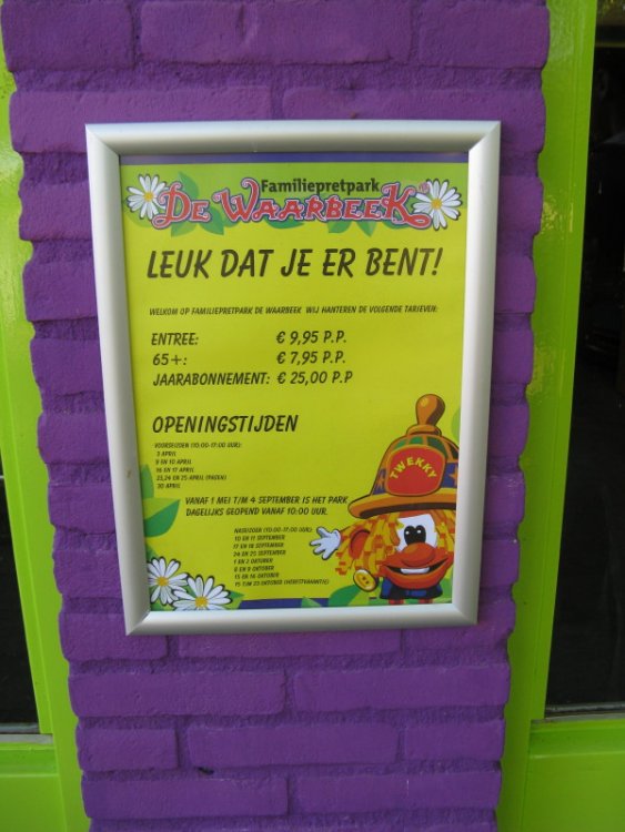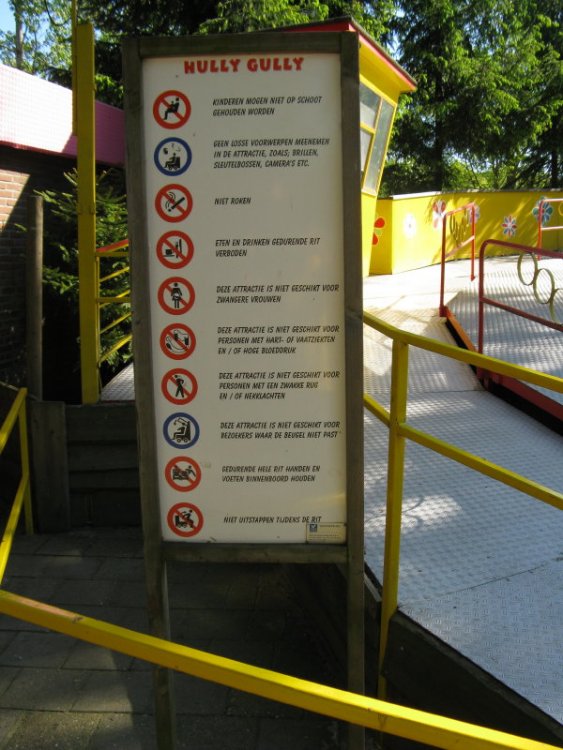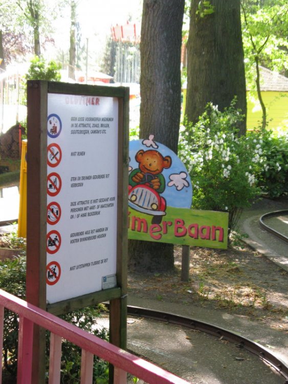 Hello everyone, I recently visited some small parks in The Netherlands just to collect my few remaining credits in this beautiful country. <--- Don't take that too seriously!! On may first Eelke Bart (vuurvogel), Danny (coasterer) and me made the long drive to the other side of the country to visit De Waarbeek. Never ever been there before and thought it was about time to pay that place a visit. It's not only very small but they do own one of the worlds oldest, still working, steel rollercoaster. I guess that's already enough reason to visit that place. The coaster was home build somewhere in the 30's. So I guess this is enough blah blah. Pictures..... Let's do it!!! Pricing is very non American and Nice. We and this massive crowd were waiting for the big purple gate to heaven to open. Once it opend we saw this. Worth the wait huh!. Must find park map, must find it. What a relief. Thank god we had the queens approval. Where to start.... There are several flat rides and some small kids rides too. First stop Ferris wheel. See big wheel with buckets. Can't remember why I took this one. Just for atmosphere I guess. This is about the whole park. Whip it!!! Like a sitting duck. Most of the flats are old carnival rides. Upskirt. Tissues please. Too late. Some rides were covered up. Official ride sign of the covered up ride. Out of captions. Still out of captions. Go Danny Go!!! Chairlift. Insert fat/ACE joke here. This is the only picture of the nautic jet I have. Sorry guys no tissues this time. Chairswing. What about those bears? Index love. In all it's glory. Another bear ride. For small bears. Choose your favorite disney character and ride it!! Bear driving a car. Papa and baby bear. The bears conquer the tunnel. Last ride... Bear coaster. You need at least two bears to ride the coaster. Amazing ride!!! POV hill shot... Tissues!! Coaster track!! For it's age it's a very smooth ride.