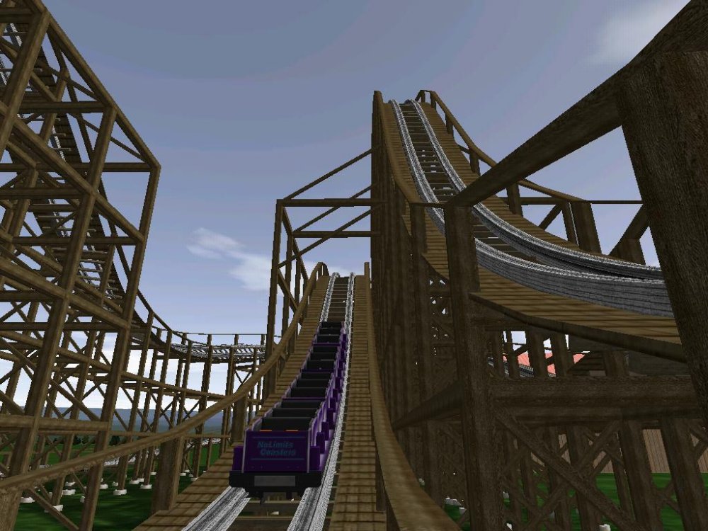 Recgonisable by it's silver rails Quicksilver is not the most intense woodie, nor is it the tallest but it promises one thing, insane airtime in any seat!. This is an intamin Plug'n'play. ================================ Notes: -The ride was tunnel tested with a steel coaster track for more realisitc clearences. -the layout is based on El Toro and Balder ================================ Stats: Height:110ft Length:3367ft Speed:55mph Train Info: 2 trains, 4 cars per train, 3 peeps per car, 12 peeps per train, 24peeps max! Max+ gs: +4.3 Max- Gs: -1.5 ================================= QuickSilver V2.2 for TPR.nltrack