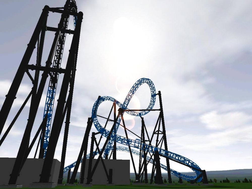 an old ride i had never got to uploading. ===================================== Sky IV is a unique intamin shuttle using a patented and unique Hydrolic and LSM combination launch track. Hydrolics to accelerate and LSMs to decelerate. The ride also features a one of a kind Flying immelmann element which while it looks like a cobra roll only truely inverts once. ======================================== This ride would use the smaller Intamin trains since the manuver of the flying immelmann is quite small. ====================================== and now announcing it's bronze medal on WWS! ======================================== more screenshots on request... Sky IV[Flanged]V2.nltrack Bronze.bmp medal!
