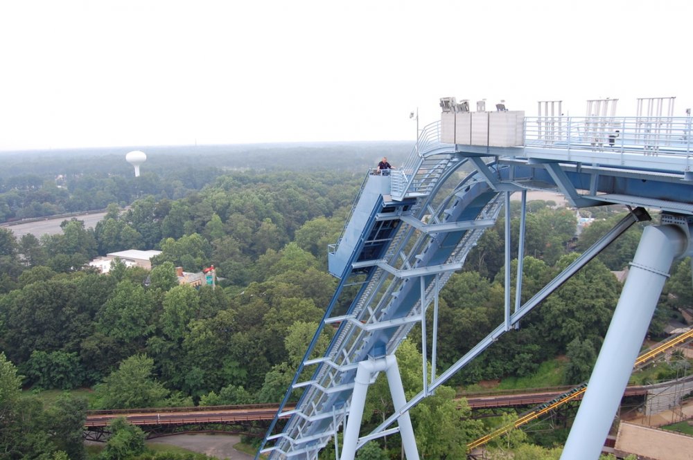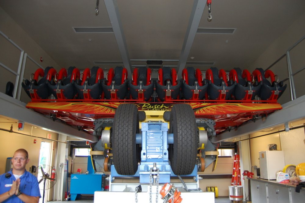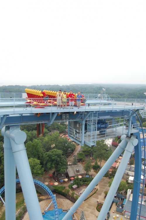Busch Gardens Europe, July 3, 2011 We arrived at the parking lot at 8:00 a.m. as our group had reserved an Insider's tour of the roller coasters of this amazing park. Busch Gardens Europe has been one of my favorite parks since I was very young, many of my fondest memories have been created here and today was no exception. Our $65 tour packet does not include park admission, however, it does include free parking, 2 rides on each of the parks adult coasters and a quick queue card for later use on each coaster for one more ride each. We were also granted access to Loch Ness Monster, Griffon, and Alpengeist's maintenance bays, a photographer to capture the experience on film, and a ride to the top of Griffon's 205' summit via gas powered evacuation trolley. We were introduced to our awesome tour guides, Nate, Greg, and Chelsea, and were brought to the Loch Ness Monster for a comparitive talk of old vs. new steel coasters. We were then allowed into the maintenance bay to meet the crew that keeps the beast alive, as well as hold and examine parts of the coaster like the wheels and chain dogs. The next part of the tour was a ride to the top of Griffon's lift hill by the gas-powered evacuation/inspection trolley. I've posted some photos our tour guide snapped from the top. The tour group which consisted of myself, 3 friends and 3 staff then moved into Griffon's maintenance bay where we got an exclusive view of the 9 ton, 30 passenger, floorless dive machine trains. We were able to hold Griffon's road wheels, which weigh an astonishing 45 pounds each! Next up was Grffon's control tower, complete with impressive touch screen controls and an amazingly friendly and efficient crew. We then were given two front seat rides on the world's largest dive machine. It quickly became my #1 coaster out of the 250+ I have been on. We moved on to Alpengeist's maintenance area and rode it twice in the front row. Alpengeist is my favorite inverted coaster, even with the trim brakes the layout is awesome and the coaster's second half has some nice carving elements close to the ground. The park was now open to the public so our guides walked us up the exit for the parks other 3 coasters, allowing us to sit wherever we liked. They also gave us a quick queue card to skip the lines for the 4 coasters later in the day. I just want to thank Chelsea, Greg, and Nate the supervisor for providing what was easily the best park experience I have ever had. I highly reccomend this tour if you plan on visiting Busch Gardens. We lucked out yet again with crowds later in the day, we assume the 100 degree weather kept most people indoors with their air conditioners. We waited no more than 5 minutes for everything at the peak of business hours. Here are the rides we checked out today. Griffon (x3): world's largest B&M dive machine Alpengeist (x3): B&M Inverted Loch Ness Monster (x2): Arrow looper Apollo's Chariot (x3): B&M Speedcoaster Busch Gardens Railway: miniature railroad/park transit Roman Rapids: circular rapids ride Escape from Pompeii: Intamin spillwater w/ dark ride The Curse of Darkastle: 4D Dark ride (amazing!) Europe in the Air: Motion simulator To wrap things up, you've got to love Busch Gardens. The service is top notch, the rides are world class and there's a perfect variety to choose from. Let's not forget that BGE has been voted the world's most beautiful park for many years. For those planning a visit, be aware that the park is still waiting for parts needed to open the new Mach Tower freefall ride, but the delivery is expected soon. Verbolten construction is moving right along, and can best be viewed from the bumper cars queue. Well done Busch Gardens, you never cease to amaze me. Photos are different sizes due to being from different people's cameras, thanks to Matt and Nina for taking so many of them! Busch Gardens Europe for the first time in about 10 years Nate, one of our tour guides It's interesting to compare LNM with the much more modern B&M beasts across the river. This is the maintenance car used to get to Griffon's summit The gas powered trolley goes much slower than Griffon's actual lifting chain Alpengeist and LNM far below One of Griffon's three trains resting before the holding brake Griffon is impressive to say the least One of Grif's massive road wheels Let's take a look at the trains What an impressive wingspan! Even the upstop wheels are larger than most coasters road wheels The entire bogey assembly is extremely flexible to maneuver the Immelmans and tight turns Let's get these puppies rolling! Griffon control panel We are locked in and ready for dispatch The holding chain at the top of the first drop keeps you in place to let you take in the view of what lies ahead Griffon's first, large Immelman Coming down from Immelman 1 The second drop is nearly, but not quite vertical and sends you into another Immelman After a small bunny hop, the gigantic trains splash into a pool of water My favorite inverted coaster was next, Alpengeist Lots of replacement wheels for Alpy Inside Loch Ness Monster's maintenance bay, we find ingredients for an Arrow train Loch Ness Monster's chain dogs and antirollback mechanism See how small LNM's upstops are compared to Griffon's? Let's head across the park to Apollo's Chariot and take a look at Verbolten's plot Footer Much of Verbolten will follow the Big Bad Wolf's former ride path, here are new footers leading from the final drop up to the station We were given two rides on Apollo, once in the very front and once in the back row, this is an awesome tour, I highly recommend it. -