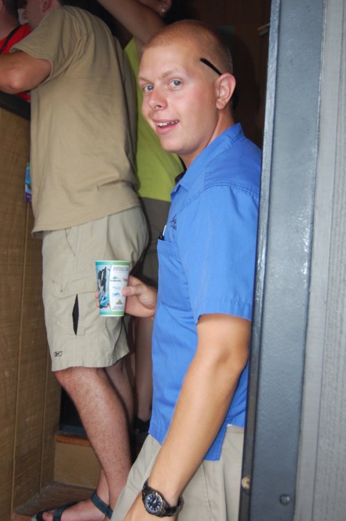 Kings Dominion, July 4, 2011 To celebrate Independance Day, we were going to take advantage of our Cedar Fair Platinum Pass and visit Kings Dominion which is fairly close to Busch Gardens. We yet again lucked out with crowds and were the first passengers on both Volcano and Flight of Fear. While in line for Intimidator 305, a stuck brake fin caused a 20 minute delay but it was well worth the wait. I-305 is fast, wicked, and intense. The cable lift flings you over the 305' summit before you even have a chance to think about it. We rode after a rainstorm and the coaster felt like it was easily pushing a hundred miles an hour. The park has a great variety of coasters and flat rides, but to me, the awkward names and theming, as well as customer service and food are in serious need of some help. I understand it was a busy, hot day and many of the staff were working double shifts but after being amongst BGE's smiling ride crews it was like night and day. We do want to acknowledge Dale, an older gentleman working at I-305 who was clearly an outstanding, funny and efficient ride op. A thunderstorm did shut down most of the park for a few hours, but it was just enough to scare away the crowds in time for the parks awesome fireworks show later on that evening. When the storm passed, we were able to get night rides on Dominator, Volcano, and I-305 which has easily become the best coaster in the park. I am glad Cedar Fair is now in control of this park and look forward to improvements over the years. Volcano (x2): Intamin LIM Launch Inverted Flight of Fear (x2): Premier Indoor LIM Launch Intimidator 305 (x2): Intamin gigacoaster Anaconda: Arrow multilooper Backlot Stunt Coaster: Premier launcher w/ show elements Shockwave: TOGO Standup Ricochet: Wild Mouse Drop Tower: Intamin circular drop tower (270' drop) Grizzly: Wooden coaster Rebel Yell: Racing wooden coaster Dominator: B&M Floorless, perhaps the greatest ever Coasters: 4/5 Staff Courtesy: 2/5 Landscaping: 3/5 Food: 2/5 Cleanliness: 3/5 Thank you for reading my report. Special thanks to John, Nina and Matt for the photos throughout the trip! Unfortunately there's only one for today, and that's the awesome Mr. Dale! Please clone him and redistribute him as needed KD. -