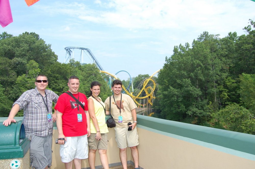 After much anticipation, my friends John, Nina, Matt and I were ready for the first leg of our journey. After driving and staying overnight in Virginia, we continued the next morning to The Carolinas. Carowinds, July 2, 2011 This was my first time visiting this beautiful park laid across both North and South Carolina. Our Cedar Fair platinum passes got us great, free parking in the season pass lot very close to the entrance of the park. We got right to work riding coasters, starting with Nighthawk as suggested by the locals. Here are the rides we experienced in order... Nighthawk: Vekoma Flying Coaster Carolina Goldrusher: Arrow Mine Train Carolina Cobra: Vekoma Boomerang w/ new train Carolina Cyclone: Arrow Loopscrew Drop Tower: Intamin 2nd gen. drop tower Ricochet: Wild Mouse Hurler: Wooden Coaster Vortex: B&M Standup Intimidator (x3): B&M Speedcoaster Afterburn: B&M Inverted Thunder Road: Double Racing wooden coaster Boo Blasters: Shooting dark ride Sky Tower: Observation cabin Bumper Cars We were fortunate enough to go on every ride we wanted to with wait times ranging from walkons to 10 minutes. This was especially amazing considering it was the Saturday before a major holiday. The park looked great, the coasters were ample and thrilling and I would definitely visit again. Next up, Busch Gardens Europe, featuring the roller coaster insider's tour! (Photo credits: Nina R. and Matt R.) The entry plaza of Carowinds, on the bricks is a line splitting the park between North and South Carolina. An aerial view of the back corner of the park We started off with Nighthawk, formerly Stealth at Great America An aerial view of Nighthawk Carolina Cyclone can't decide what color it is Going up on the drop tower, can't we think of a better name? Vortex, one of the original B&M standup models, definitely a little rough these days. Afterburn packs the punch of its big brother Montu, but without a midcourse brake run the speed never lets up till the end. Intimidator, a lot better than we all expected, easily the best B&M Speedcoaster out there. The 240' lifting structure To give you an idea of what the layout looks like Intimidator has something you don't normally find on a B&M speedcoaster, relentless airtime!