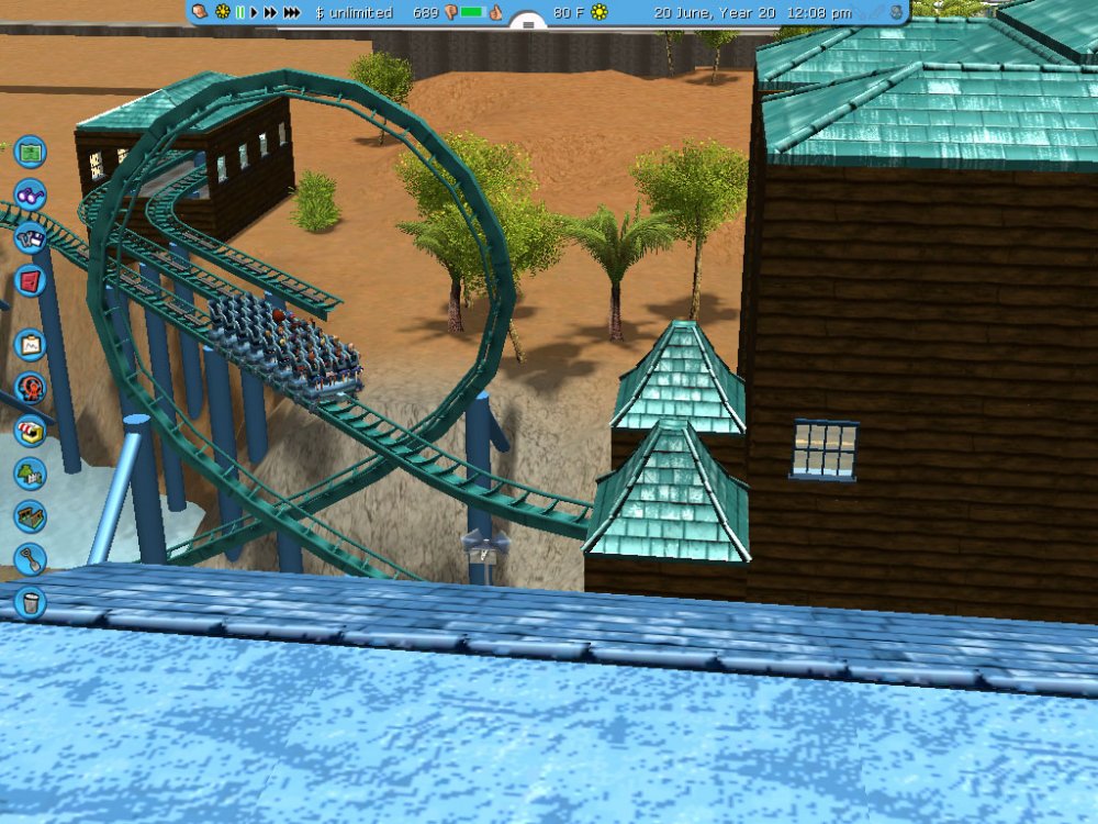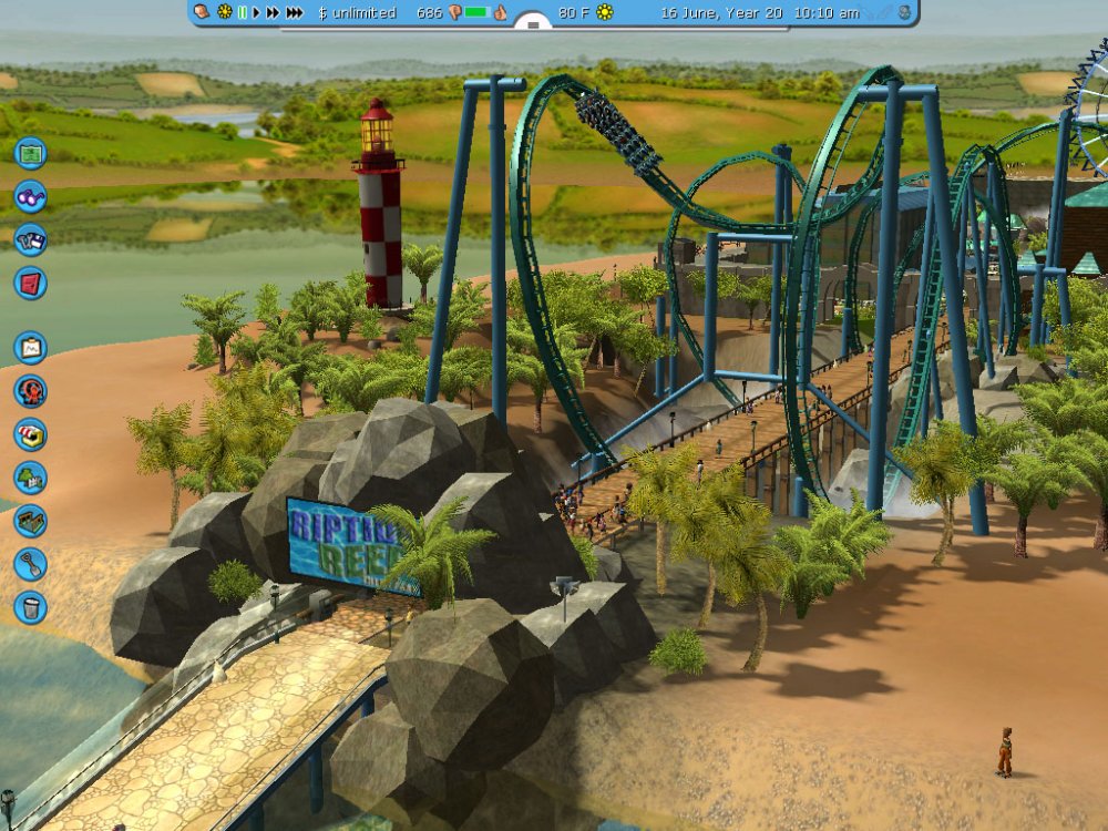 As promised, here are some screenshots of progress on Riptide Reef. Trackwork on Neptune is done but landscaping, theming and supports are not so it's about 90% complete... Park progress as of September 2008. In the near future expect to see a wooden coaster, yet another B&M and some water rides. Thanks for checking out the shots! Neptune's finale The "tidal twist" area has just begun landscaping, this area will have lots of theming when completed. Neptune's turnaround gets up close and personal with Riptide Airtime! Riders get ready to take the plunge... Neptune climbing it's massive lift Riptide Reef has received a second B&M coaster, Neptune. The station is not even close to being done and I'm just playing with some concepts here. Note how the monorail passes through the dark ride... "Mermaid Falls" has been put up by Riptide's finale. This area has some food and souvenir stands. The new Mutiny Cove dark ride, I won't spoil the interior, you can see for yourself when the park becomes available to download. A couple of new flat rides for the midway -