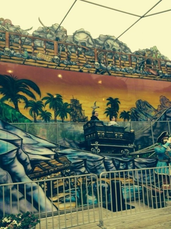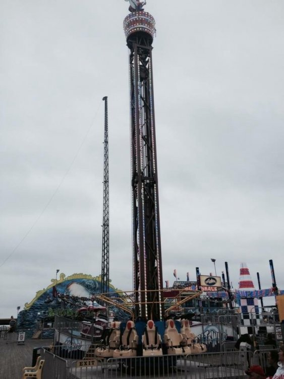 We stopped at Seaside Heights, a city close to my heart and full of happy childhood memories to check progress since the tragedy of Hurricane Sandy. It was sad to see the big coaster and Stillwalk Manor gone but the park has been Zamperla'd out with some nice new stuff. For years I have been trying to ride the unusual Wizards Cavern dark ride coaster. The first time I went it was closed due to low crowds. Second time I went , the replacement was in pieces (Pirate Hideaway) This time I was able to ride, and there was a bit more track in the building than I actually expected. A fun little thing! Don't mind if I do... Not so crowded these days, I hope to see it return to its former self one day, some new attractions will be a big help. Shore Shot survived the wind A pretty centerpiece for this little park New Zamperla Air Race Super Storm was great! Unusual lite drop tower that spins while it bounces Jess and I take a spin on Pirate Hideaway The facade and drops Spiral lift From 2010 when she was new In 2010, ah that new coaster shine