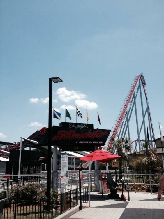 I visited June 17 and man it was hot, over 100 degrees! The front gate was very crowded but most people wisely went for the water park. Some notes... Fury is my new #1 coaster out of my 294, which is no surprise since Leviathan was my favorite before it came along. I am in the minority of speed coaster fans , while the ones 200 feet or less haven't touched my top 10 and can't dethrone the Intamins up there, these giga speed coasters are amazing and I love the low to the ground maneuvers and that first drop is killer ! Intimidator is still good, no line for any coasters today on account of the heat. Afterburner was better than I remember, even after riding Banshee last year. The staff here was very nice for the most part, and were encouraging and giving lots of ice water to guests. Banshee's badass older brother Afterburn Love these intense inverted loops No wait time at all I still love you Intimidator It's just... ... I've found someone else. You can "see the heat" in this photo So good, plus the guy working here told us all the new coasters coming in the next 30 years. Jessie and I love B&Ms... She got her nails done to celebrate Fury! I took home a plush hornet... I couldn't resist. You could win stingers and hornet helmets too, but for some reason... No one was wearing them in the 100 degree heat We made it ! Best drop I've ever done, the slowing lift hill at the summit makes acrophobics like me cringe a little. Amazingly fast and massive amounts of airtime Sideways airtime is always great Loved this element We love it! We love the South and we will be back for the next one! Thanks for the hospitality Carolina's! -
