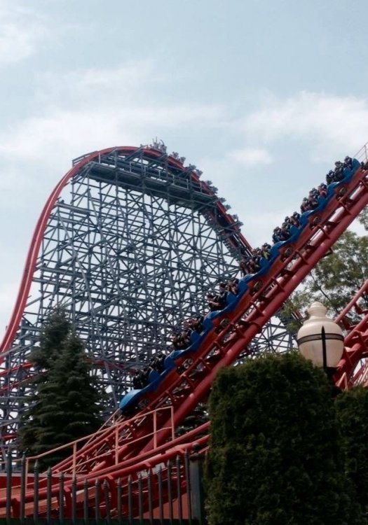 I just got back from what I have to say was my best ever trip to my home park. The staff overall are more polite and with good crews than I have seen in a while. Of my six trips on Wicked Cyclone I asked for a front row once and they kindly allowed which was great. WC was delayed until noon for opening , they told us something needed "tightening up" and they were adding the second train. We waited for about half an hour after we arrived for our first ride but it was a walk on most of the day. I saw a lot of enthusiasts today, many from overseas, hope you enjoyed your day at the park on this hot day! Noticed a guy in an SOB shirt, three guys in coaster club shirts and someone in particular who had an amazing Krustyland shirt, love it dude. My opinion of Wicked Cycone was that it was really intense, relentless in airtime, and I compare it somewhat to the many twists and turns of Maverick. As I get older I find I rank coasters less and just love them all so much to tell you if I liked it better than Bizarro, Leviathan, Maverick and my other favorites of the 250 or so coasters I have been on but it was absolutely amazing and lives up to the hype I have been reading about. Here's my ride count for today: WC: 6, 30 mins to walk on later in the day, I reccomend the front row if you're lucky enough to land it! Bizarro: 1 ,30 mins, 2 trains, solid crew here! Blizzard River, 1, walk on Flashback,1, walk on Goliath, 1, 20 minutes, oh god it was painful this year but I still love that vertical inverted drop Here are some photos: