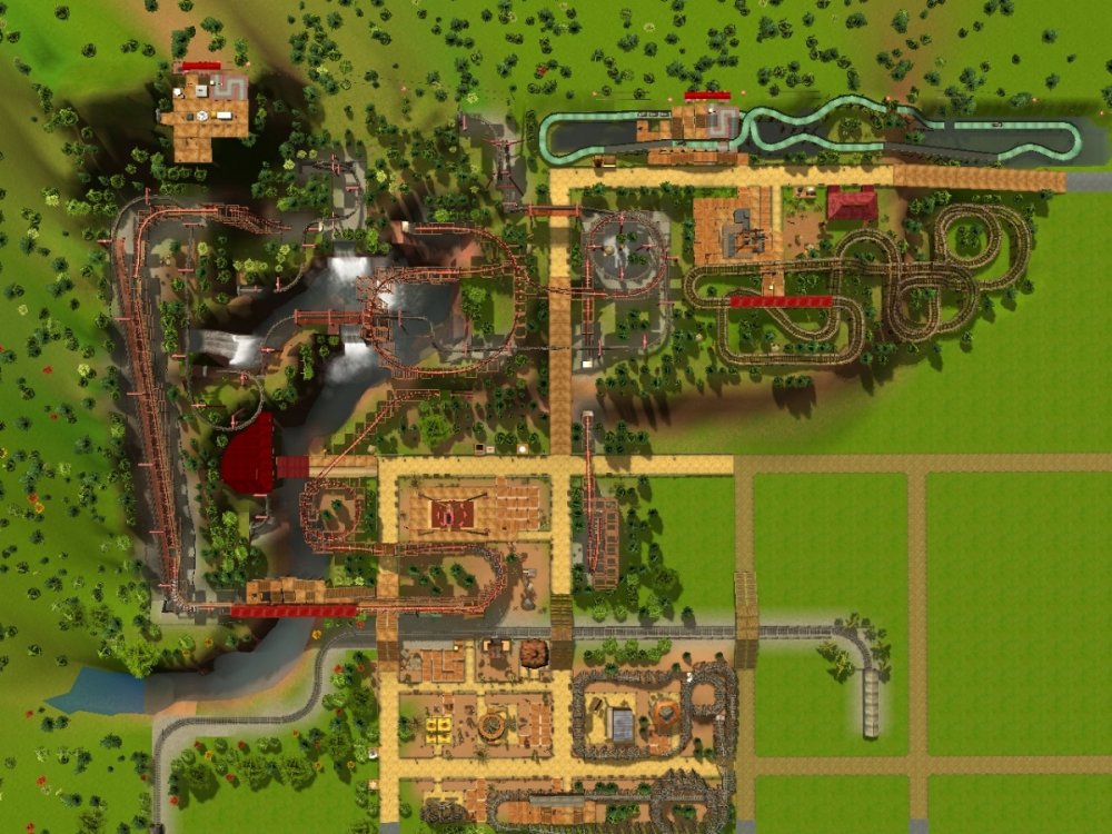 2-9-2015 Hello everyone, Adrenaland is very much alive and well, and some major installations were placed this weekend: Evergreen Falls area (including Prairie sub area) were completed today. Additions to the area include... Tomahawk -GCI Terrain Twister, the park's first truly wooden roller coaster Gold Fever, Arrow mine train Shafted, mine drop ride Buffalo Roundup kids' ride The Lasso, Dynamo, Wagon Wheel, and Haybaler rides added to The Prairie New restaurant, Mountaintop Grill New eateries and shops throughout area New sky ride line connects Atlantic Star ferris wheel to Evergreen Falls and Mount Abenaki Abenaki upgraded with more near miss elements EverScream buildings fixed and polished Timberline Falls log ride New jet and ferryboat service connecting the ends of the boardwalk And last but not least: Our brand new $15 million dollar dive machine finished basic construction today, with theming elements and more on the way soon! True fact: "Reaper" will interact with a yet to be installed, highly themed B&M flying coaster: The Wraith. Look for additions to the boardwalk area and the brand new area called "The Feargrounds" in our next update! Thanks for reading, catch you next time... An overall look at the completed Evergreen Falls area, look at all the new rides! An overall look at the completed Evergreen Falls area, look at all the new rides!