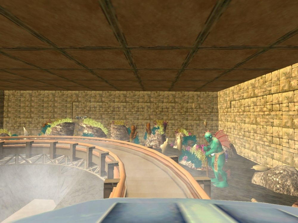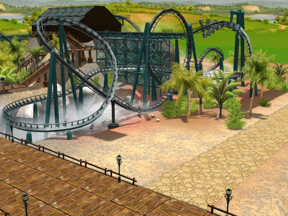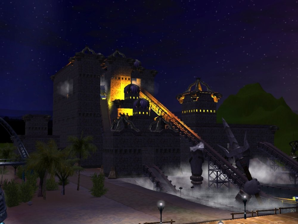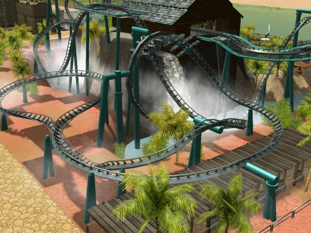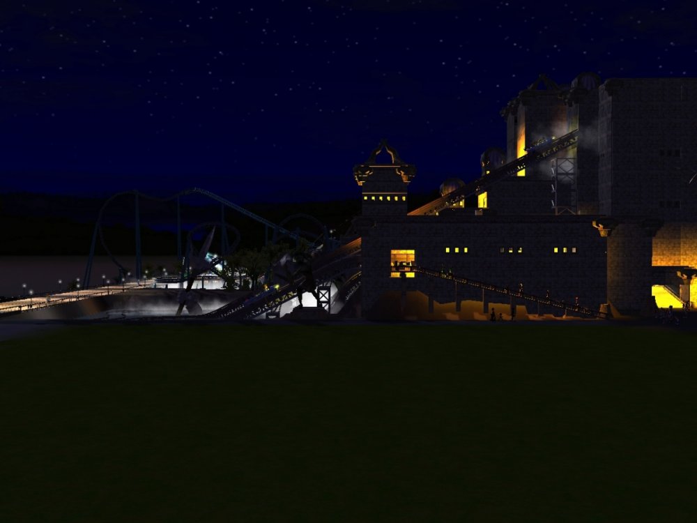 Hey Jonny, you'll be pleased to know Temple of Poseidon is themed wall to wall inside and out. There are a few more details to add to this Mack Supersplash/Dark Ride hybrid but I will show what we have so far. The adjacent "Riptide" is the park's first coaster and is in fact a B&M wing coaster. Riptide is a redesign from all of my past floorless incarnations with some modern-day twists added in. Here's some facts about Riptide... Engineer: S. Costa/AAI Bolliger and Mabillard "Wing Coaster" (mfg. Monthey Switzerland, mctr. Claremont Steel, OH, USA) First test run 5, August 2015 Results: Excitement: 7.96 (Very High), Intensity 6.99 (High), Nausea: 2.18 (Low) , my most perfected design to date. Max Speed:60 mph Height:135 feet tall Biggest Drop:115 feet "Boardwalk Buster" keyhole drop, first of it's kind. Inversions: (5 Total) Wingover Drop, Zero Gravity Roll, Diving Loop, Vertical Loop, first of it's kind "Sailor's Knot" finale Gravitational Forces: Max +V: 4.84xG, Max -V: -1.73 xG, Max Lat G: 2.97 xG, 12 seconds of "airtime", also known as "moon balls" here in Rhode Island. Enjoy, and thanks for checking out this project years in the making! Overview of Riptide Reef themed zone: Temple of Posidoen (L) and Riptide ® I will peel the roof off of Temple of Poseidon's second show building to offer a little peak, but videos will be available soon for those who might want to see a ride through. I'm no ImaginnerTim but this park is coming along nicely. Currently the view from ToP's platform. Needs a little theming. The big drop, remember, there is still a lot of theming work to be done on the exterior. I wanted to finish off the show scenes and close up the temple. The lift at the end of the ride. The show building is visible from all sides of the park, so it needed to be themed like Poseidon's Temple, ruined by time. The other side of the show building, clearly I was inspired by Sea World Orlando's Journey to Atlantis. All of my special effects still work. Zing. Although Riptide Reef is mostly set around a tropical fishing village ravaged by storms, the western half will be lit by fire only and heavily landscaped. Riptide: I LOVED Gatekeeper. I love B&M. I am in the minority. I do not care, LOVE them. If I were tasked with designing Gatekeeper I would have done something like this: Riptide starts things off with the "boardwalk buster" first drop (crashing through the boardwalk after soaring over the bay upside down) The inversions are low and tight, when B&M still had all their hair, those rides pulled some G's! The Zero-G Roll and Diving Loop, then a twisty trek to the MCBR. Gotta spatch the second train of course... You will get wet on this ride. Let's end it with a g-shredding vertical loop and a never before seen Sailor's Knot. ::throws drumsticks into the crowd:: That's Riptide: Ride for Your Life! More to come... more new rides are already running at Adrenaland, but no peeking until there's more detail.