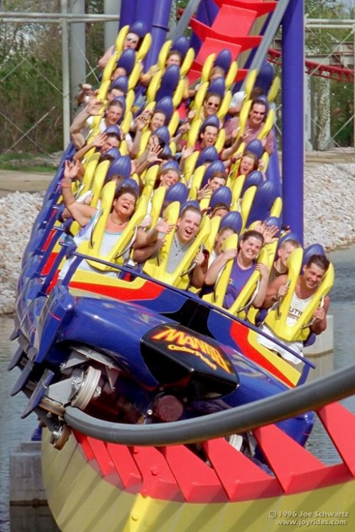 I hope it gets that green paint. Even if the name stays Mantis, the green would work better with a theme of a green insect, moreso than the use of all three primary colors. Could our photoshop pros indulge my desire to see a green Mantis with grey supports? The grey is the color I was questioning. (If it looks like primer paint) I would love that shade of green MUCH better than the red blue and yellow. The green would work nicely there, very Rogouruish. The current color sheme resembles the Mantis Shrimp, which is every color Crayola could dream of. A mantis is green, damnit. When Mantis was new and shiny. I always thought the colors were a little wild for such a beautiful part of the park. -
