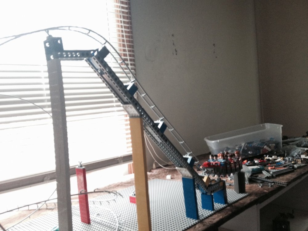 I'm laying track today making sure everything is even. Train moves up nicely when pushed, I'm hoping to get the motor and chain within a couple weeks. All the track is being set up for a mockup but it will be all removed so the supports can be painted.