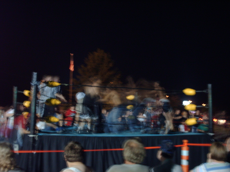 15. I attended the annual Matamoras Community Festival this past Saturday night for a big grand total of 27 minutes. Yes, there was that much to do there. It was so exciting. And to think, it actually used to be crappier. The first year they had it, my girlfriend and I went and made the rounds in 5 minutes and left. Pretty pathetic. Well, it has gotten better, but it still really sucks. I was actually supposed to work there this week (my girlfriend's parents sell body jewelry and sterling silver and I was supposed to help) but it was deemed not worth it by us because of the flood killing one night and the chance of rain for 2 of the remaining 3. Anyway, enough about that boring crap. EDIT: Sorry, it's been a while since I've done a PTR. The pics are backwards. I hope you enjoy though. The entrance to the welcome center off of I84 was still flooded. Well, this is where we are. The Matamoras Fire Department puts this on every year here at Airport Park in Matamoras, PA. I'm sure I could come up with something relatively humorous to say here, but I won't just in respect of how great of a job they did Yay! Country music in a trailer! This is the big ticket attraction at the "festival" - the swinging ship. The thing actually sways from side to side about a foot each way on every swing. You know it is a bad sign when they can't even hang the sign up. Anybody with a death wish? Once again, out in the open. Too bad they didn't take into account that only 10% of the Matamoras and Port Jervis population can actually read. A little love for the Trabant. The crappy kiddie rides with other equally crappy rides in the background. See Dan - water can be fun! This girl kicked some serious butt. See those three popped balloons? All her. Now daddy gets to carry around a giant stuffed snake for the rest of the night in the horrible humidity. This is the infamous dunk tank. In previous years it has just looked like river water, but this year with the flooding, I wouldn't be surprised if it actually was. Those crazy Republicans. It's not a party in Hicksville without beer. Ok, so, 10% of people can actually read. So taking into account that approximately 4% of those are children and young adults under the age of 21 and the fact that people have a hard time reading when drunk, that means that only 2.5% will actually compreh Wrestling was there and was mildly entertaining and was the only reason I was able to stay for the 27 minutes that I did. I left just after this match was over, which included a guy get thrown through a flaming table, a fight outside of the ring that led