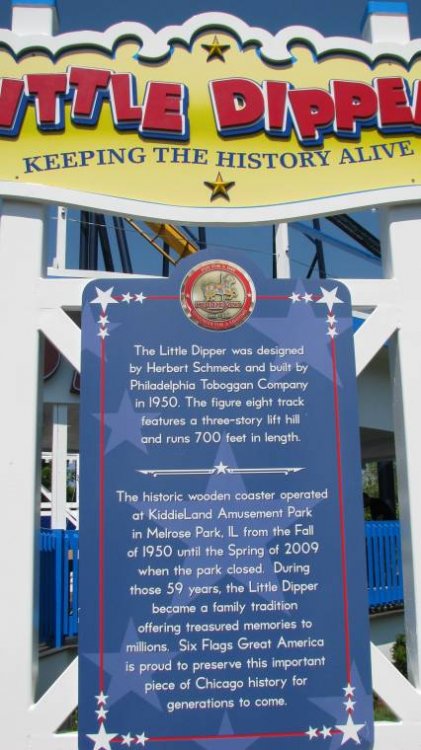 Ran to the park this morning for the Little Dipper re-opening. The ride looks fantastic and it fits in perfectly. The ride was re-built at SFgam with nearly 90% wood, but the specs are supposed to be nearly exact to when it was at Kiddieland. The height limit is 36 inches with an adult or 42 inches alone. The Little Dipper is a wonderful first coaster for the little ones. I have also included a couple pics of the new ropes course going in front of the Demon.