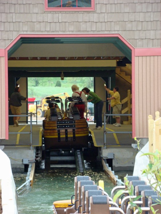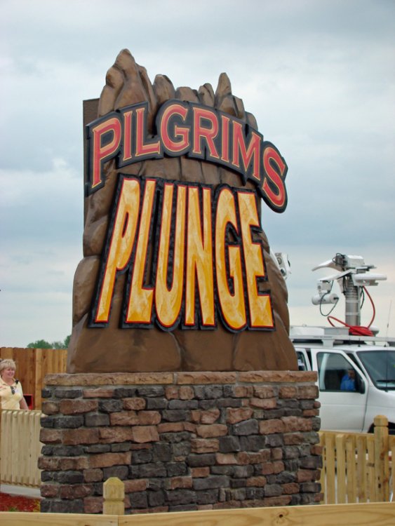 I was at the media event yesterday. The ride is terrific and you get absolutely soaked. I really think everyone needs to withhold judgement on the ride UNTIL YOU ACTUALLY RIDE IT FOR YOURSELF. I thought it was really fun! The elevator lift is a little unnerving -- especially the subtle tilt to the side as the elevator passes the other one. At the very top of the lift, a bird has made a nest in the track -- there are little blue eggs in there. Every time a boat got to the top, the poor bird freaked out. The whole area that has been developed for Pilgrim's Plunge is very nice. They've done a terrific job with the station and you can see the first hints of landscaping, too. The area is quite nice. The boats are very cool and pretty comfortable. Once dispatched, the boat moves pretty quickly through the course. Watch the big turn, there's quite a wall of water for the front of the boat! After the quick and unsettling elevator lift, you get a terrific view of the park (and a new one, too!). The drop is best from the front seat -- obviously. The splash down is long and the actual splash is fairly sustained. Those in the front will get a lap full of water once the boat begins to slow a bit. The splash might not look very big from a non-rider's perspective, but it is pretty impressive when you are in the boat surrounded by a huge wall of water! Overall, I think Holiday World has an absolute winner. Families are going to love this ride. It is going to be one of those big spectator rides that will be almost as fun to watch as to ride. The park really has been so thoughtful and smart in their additions and expansions to the park. Pilgrim's Plunge is another smart and well-placed ride that will create a buzz for the park and hopefully keep those attendance numbers growing. Thanks to Will, Pat, and Paula for the great hospitality and a great event despite the chilly temps and a few drops of rain. I ate my pizza with Santa -- not bad dinner company at all. I rode probably 10 times and was absolutely DRENCHED each and every time. Pilgrim's Plunge is great! Enjoy the ride. -- Dave Okay... now on to some pics: No trip to Holiday World would be complete without a couple of slices of their fantastic pizza! Thank you Will, Pat, Paula and all the crew at Holiday World for a terrific media event. Pilgrim's Plunge is gonna be HUGE! Really... there's no splash? Really? Just wait till you RIDE it! Ker SPLASH! Santa wants to go again! It was cloudy, cold, and rainy. But, we didn't care! They did a terrific job with the station. Unload area and station approach. Inside shot of the station. It's capable of loading several boats at a time. The official first boat gets ready to go. Santa, Will, Pat, and the rest of the gang take the maiden voyage... I mean plunge. All aboard... or ahoy matey... or party on pilgrim… or something. I see you Paula!!! See? Pretty boats in a trough full of Indiana water. What more could you want? The boats just wanted out for a swim. Honest. The approach to the station has been beautificationamized. Weeeeeeeeeeeee! And here we are! PP is truly a great addition to the park. Media day realness: We get to go in employee entrances! Wooooooooo! Oh sure... Santa gets all the attention from the press. It's not like he gives everyone presents or anything. Errr... wait a minute... Woo Hoo! Made it. I see you hills of thrills!!! On the road again... boring roads in Indiana. -