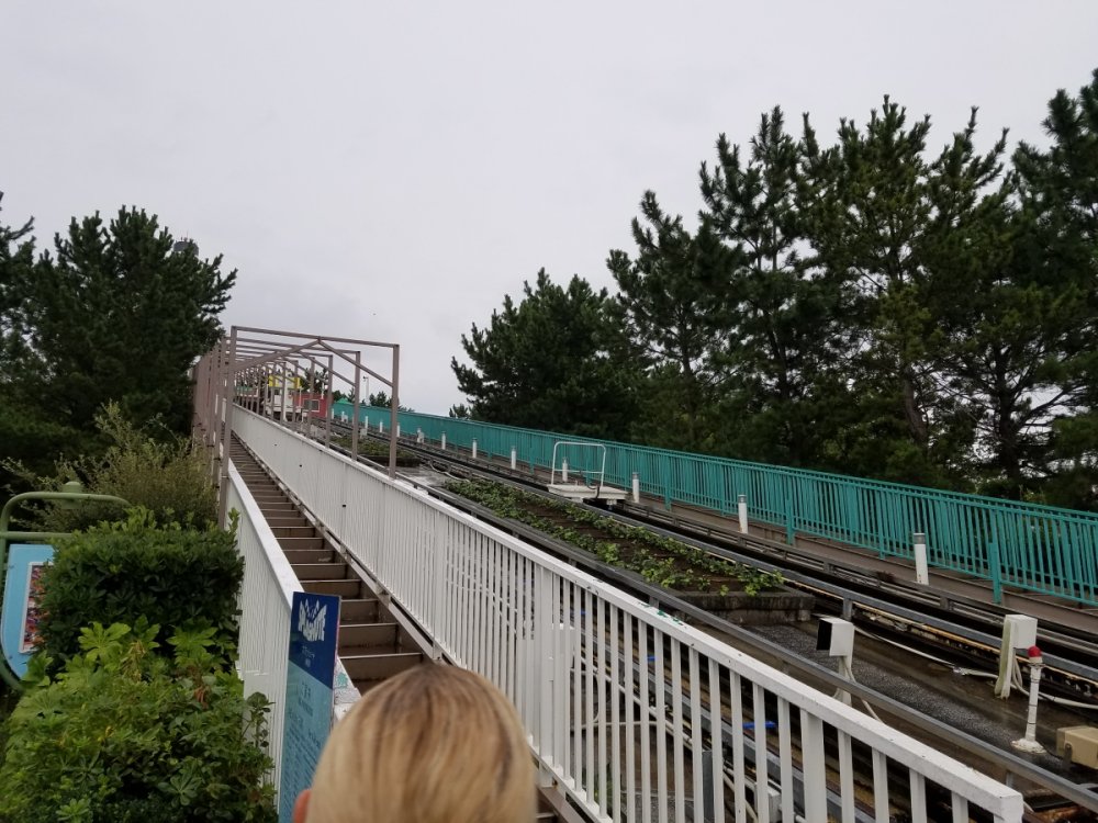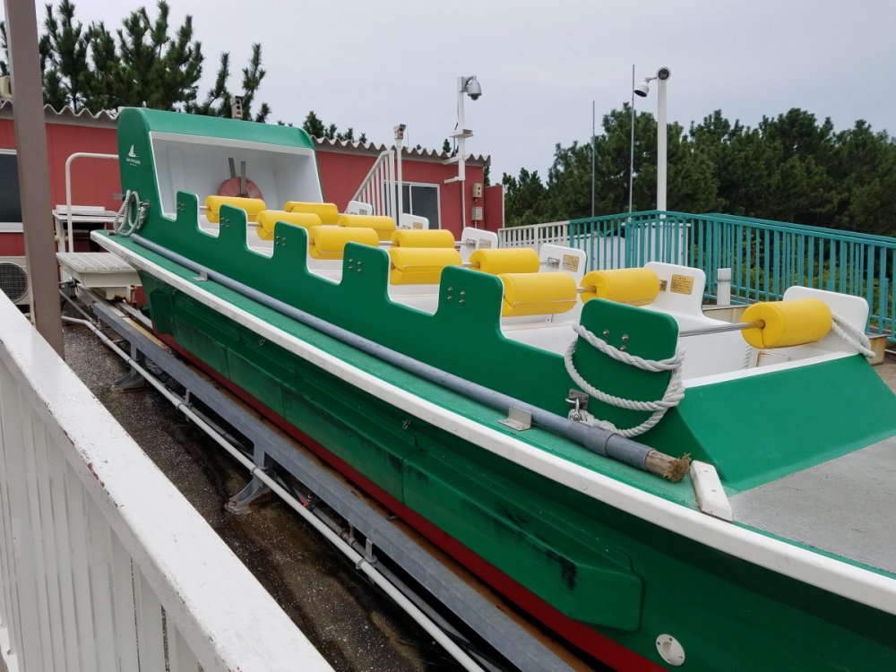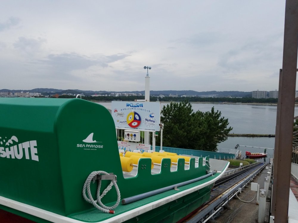 http://www.seaparadise.co.jp/pleasureland/attraction/splashute.html Located at the top of the ride info page with assistance of translation: Kind of a bummer though as it really was the last remaining boat chute rides that many US parks used to have back in the 1900's. It wasn't an intense ride, but was something that had to be ridden because of the history behind it. It wouldn't surprise me if it closed due to popularity as it never had a line when I visited and only ran one side. From my 2017 visit. You had to walk up to the top of the stairs and board the boat between the two ramps. Riders would board the boat, tighten their seatbelt, then a roulette board is spun to determined how wet you would get from the water cannons that would shoot off when you splash at the bottom. An attendant would stand on the front of the boat during the drop and then guide the boat to a separate unloading dock with a pole at the bottom. They would then hook the boat up to a towing system and take it back up to the top of the ramp.