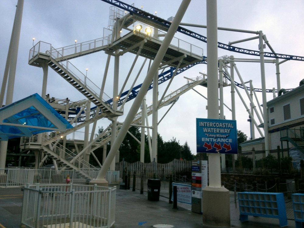 So after class on Wednesday I decided to stop by the park on my way home and take a lap or two on Skyrush. While there, I found out that the Boardwalk was open so I went out there to check out the new additions and see what Roller Soaker's area now looks like. One of the things that struck me about the renovated area was that there was a lot more seating and that the new Shoreline Sprayground is very approachable. What's cool is that I think that the old footers from the former ride were re-used for the shade structures, judging from their positions. I still haven't had the chance to experience the two new slides yet, but I should be able to in the next day or two. Here are a few photos of the new slides and Sprayground area. When you're walking down this midway, you know it is summer! Roller Soaker's station is still there, but the coaster itself is gone. What was once this... ...is now this. Intercostal Waterway's entrance has been moved down further for more queue space. This building was the ride photo building for Roller Soaker, which was at the ride exit. Some nifty netting has been put around the outside of the former Soaker station. These flags have also been added as well. The food stands from the area near East Coast Waterworks have been moved. Jet Ski! Let's check out one of the new attractions. Welcome to the Shoreline Sprayground! Compared to what this area looked like before... It is absolutely more colorful and uses less concrete. It is also more open and a very approachable attraction as well with no fence surrounding it or limit on how many can visit it. It looks like Soaker's station queue is still there. You now have a more open view of Lightning Racer's far-turn. More seating anyone? The centerpiece of the attraction has to be this tipping-bucket. Attraction and height sign. Here's a photo of just the height sign. Basically anyone can use it. On the other side of the area, an existing water attraction has also received something new for this year. Hydro and Pipeline are now up and running (The orange and yellow slides). The new height sign for the two new slides. The rules are similar to Riptide with riders needing to be at least 42" to ride and 48" to ride alone. Here's the catchpool. Thanks for reading! Once I try out the new slides, I'll post my review of them. -