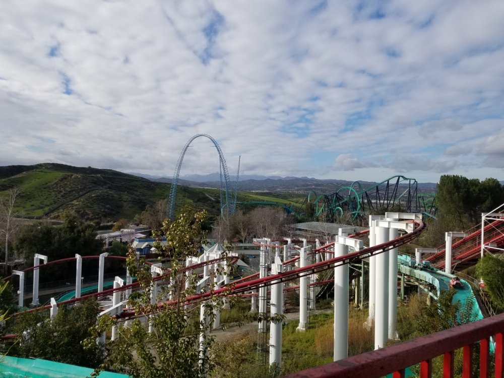 8. I had an awesome time yesterday for visiting the park for the first time. Got on everything at least once thanks to a platinum flash pass. I've got to say, and I've heard negatives about it in the past, but the employees have to be one of the best out of the six flags parks I've visited. Especially the Twisted Colossus crew who tried to get that train out there right on time on every lap. Pretty much the lack of a constant running shuttle and a couple of closed coasters were the only negative, but it gets me to want to go back again. Tatsu, Apacolypse, Riddler, and Superman were pretty much the only closed coasters. Green Lantern was open and closed all day, but snagged a ride. I really loved this view. Loved the park, but only had to spend a few hours at it. Next time I need to stay longer.
