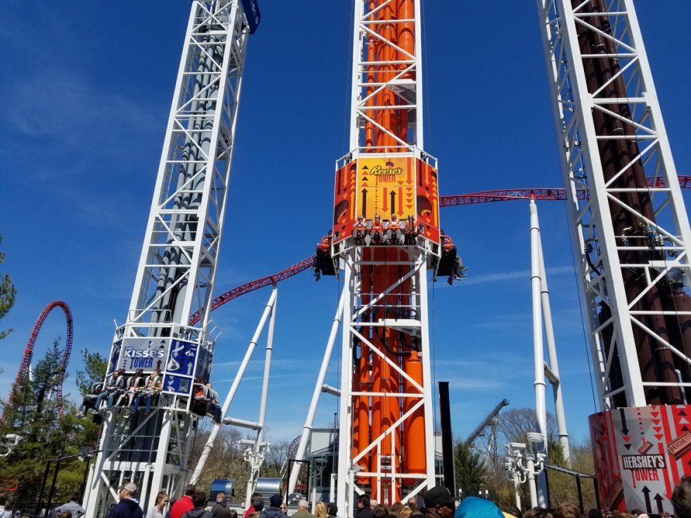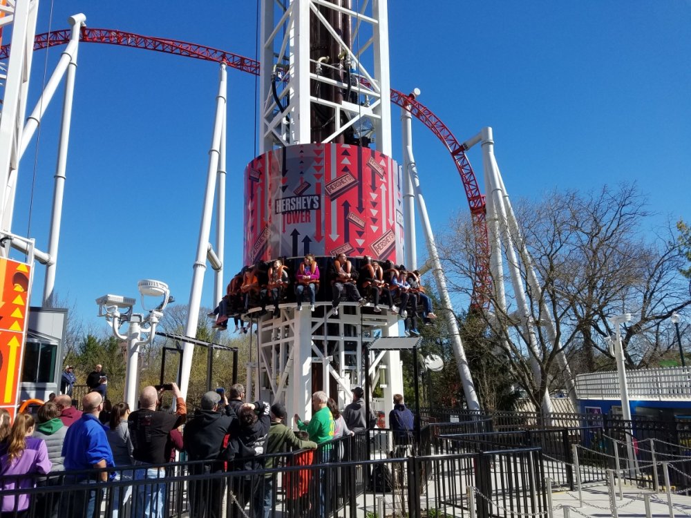 6. That looks like some serious airtime on the Kiss Tower. I was expecting some on that one, but not that much! lol I still haven't got to see them test myself, but a friend of mine did see the Hershey Tower vehicle moving slowly up and down the tower yesterday. The local TV station just did a story on the progress and it seems they are pretty far ahead of schedule with the queue just about ready to be poured. The video inside gives a closer view at the vehicles which use a newer seat style than other S&S Towers. http://abc27.com/2017/02/17/work-continues-on-schedule-for-hersheyparks-newest-attraction/