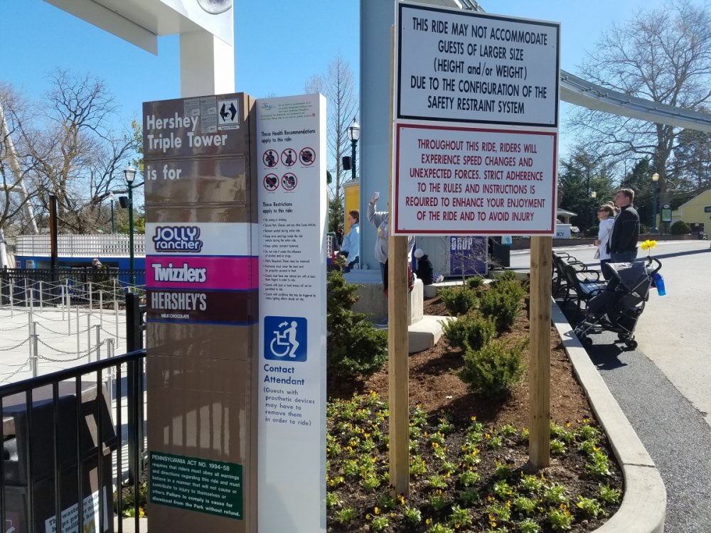 2. Here are some Hershey Triple Tower photos from this morning: Ride Height Sign. Main entrance sign.
