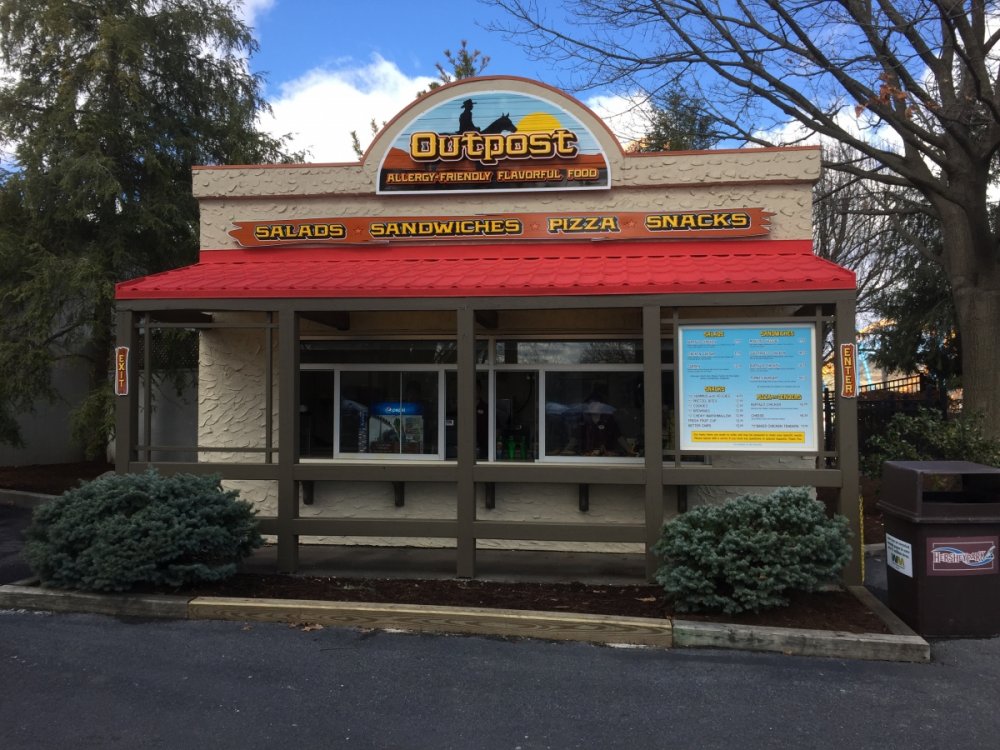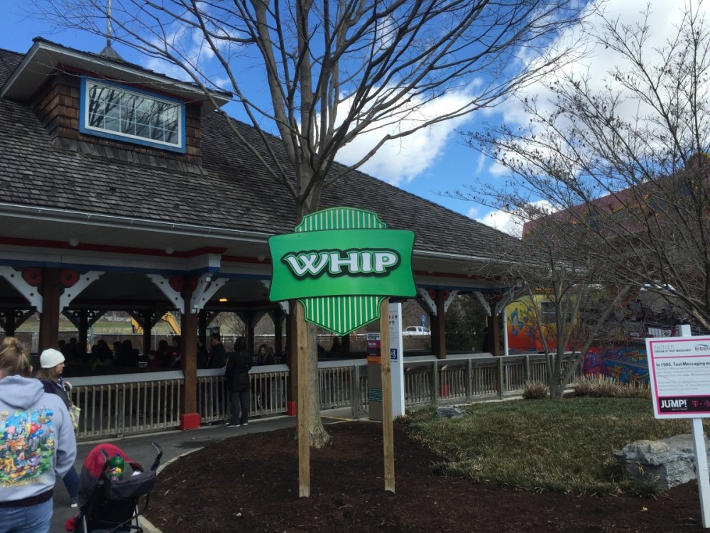 Hersheypark opened for the 2015 season this past weekend and it gave me a good opportunity to check out Laff Trakk from inside the park as well as the other new offerings. Other than the coaster, the park really added on to their current food offerings by renovating current venues, getting rid of duplicate locations, and bringing in some new items and locations. Getting back to Laff Trakk and the Midway America area, it appears that riders will enter an entryway next to the Merry Derry Dips FunSlide, go into an entrance building, make a right and enter an outside covered queue area. Following this, guests will then enter the front part of the building, somehow make their way to the station and to the large part of the building. There is a doorway next to the main part of the building, which I'm guessing will be the exit, which will run between the queue and it, right to the midway. On to the photos. Claw T-Shirt anyone? You can also pick up some new Laff Trakk souvenirs. Moving on to the new food offerings, Makin' Whoopie Pies is one of the newest locations located in the Founder's Way Food Court. For those who don't know what a Whoopie Pie is, this Pa Dutch item is a flavored cream in between two pieces of cake. You can customize your own Whoopie pie by picking one or several flavors of cake. If you want to get creative, you can add in some candy for a little extra or choose a different top and bottom cake flavor. Next you can then pick your filling from flavors such as cream cheese, mint, mocha buttercream, cotton candy, and others. You can have it in a bag to go and eat it there. It is also a pretty decent sized whoopee pie as well! The Overlook Food Court has expanded its food offerings with items such as wraps, salads, pasta, mac and cheese, gluten-free items... You can also get bone and boneless wings as well, which are really good. Pioneer Frontier Food Court now features The Outpost; an allergy-friendly eatery. Tumbleweed Tacos used to be located here. A little farther down the food court is Moe's Southwest Grill, which is their first location at a theme park. Time for Laff Trakk. Thinking back to last year, there used to be a path here that originally led over to the Midway Tent and the entrance to the slides. To ride, guests will enter through this pretty big entrance. Looks like you might then enter this covered area and then finally enter the building through the other door. The last door probably might be the exit. The trim being added to the building seems to be a nice touch. Should be interesting to see what else is added to the building before it opens. Looks like something is going to be added here eventually. Finally for Midway America, new ride signs were added to the Whip and kiddie rides that were moved. Tiny Tracks, which was the kiddie train from near the Carrousel, has been re-added where Lightning Racer's overflow queue used to be. Lastly, if you buy a regular ticket to the park, you can upgrade it to a season pass at two or three locations around the park. Midway Merchandise is one of them. -