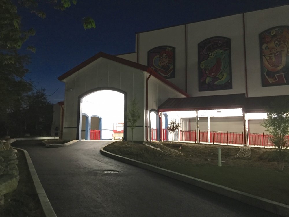 ^^^It could get pretty full since the 4th falls on a Saturday this year so be prepared. There will be fireworks on the hill in front of the Hotel Hershey, which can be seen nicely from Midway America or the Boardwalk (my favorite spot for them). The parking lot might provide a nice vantage point as well. The park might also do a catered picnic dinner that you could buy tickets to, which happened the last two years. ^^Weekdays in early June shouldn't really too bad since schools are still in session and most people haven't started vacationing yet. The park has started adding the Pepsi equivalent to Coke Freestyle machines in the park. They are currently at Craftbarn Kitchen and the Lightning Racer Discount Shop. On the Laff Trakk side of things, I found this shot of the pre-show room under construction from two weeks ago on Hersheypark's Twitter page: Construction-wise, it looks like the finishing touches are starting to be added to the exterior and queue (which seems to be really bright at night). I didn't even know Pepsi made them until I saw them at the park the other night. Still missing signage, but that is probably the next step. The queue and railings are in. It is a very bright queue thanks to LED lights. Some more lights to be added to be shown on the building murals. Next to it is the exit path. -