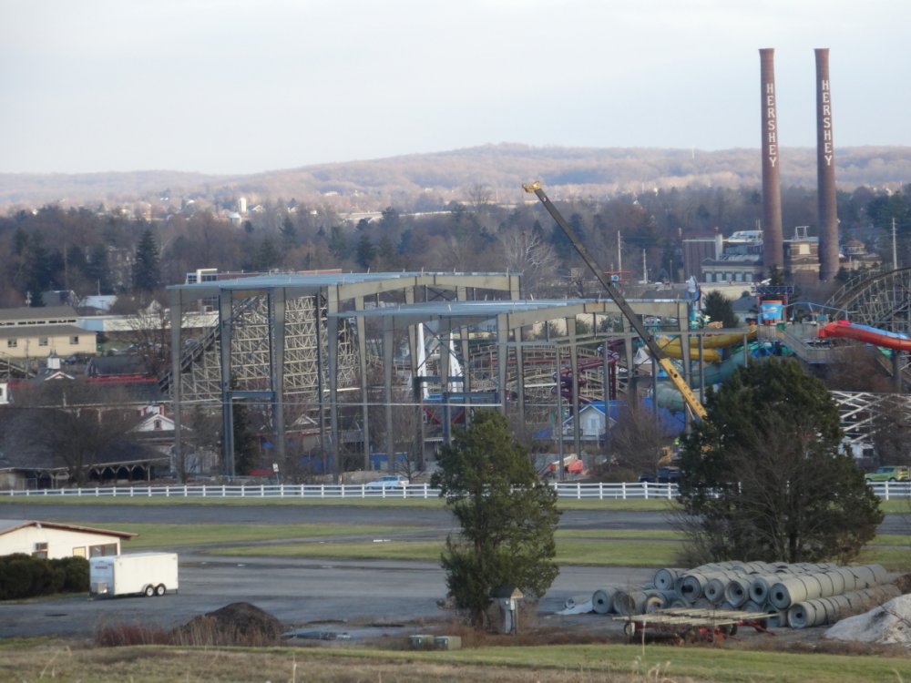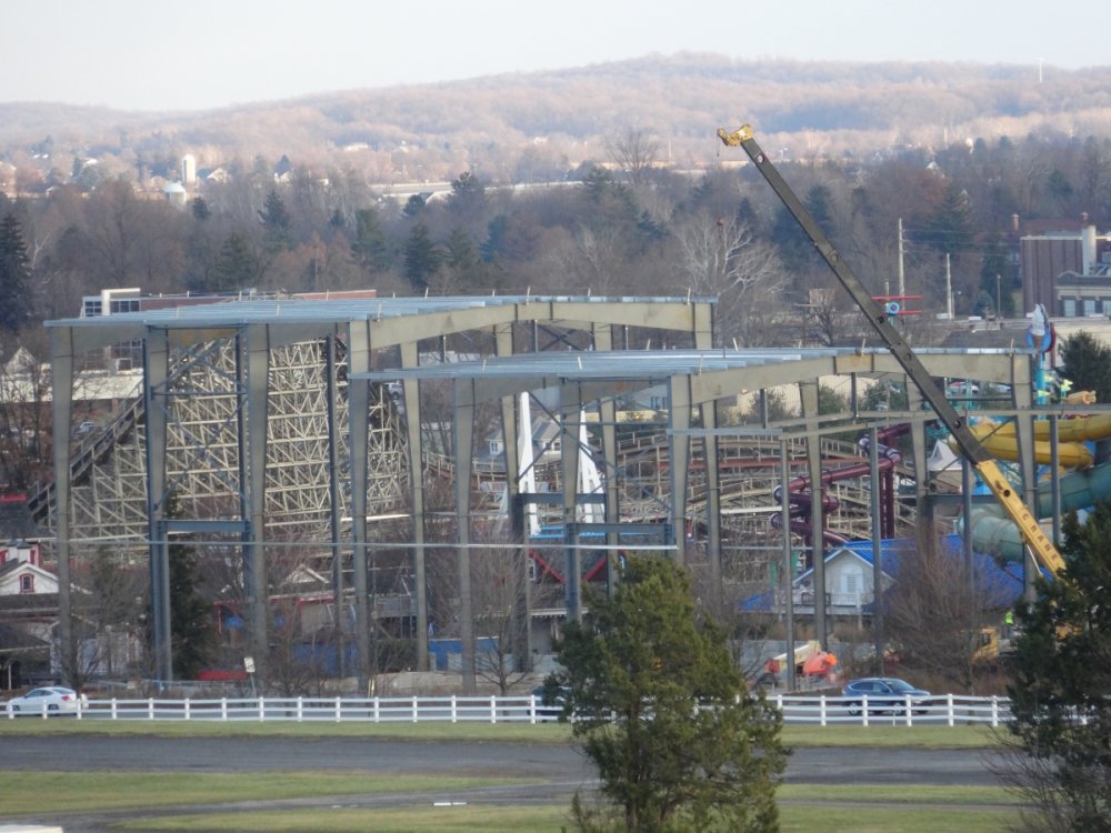 I wouldn't say that it is moving slow, but more like what was going on wasn't really interesting as the ride will be basically sat down on a concrete floor and the frame just started going up a week ago. Here's a little more detailed update on the building. It is just about 80 feet tall so it is almost as tall as Lightning Racer, Ferris Wheel and Wildcat. No track spotted yet. http://wp.me/p1sPRq-i0 -