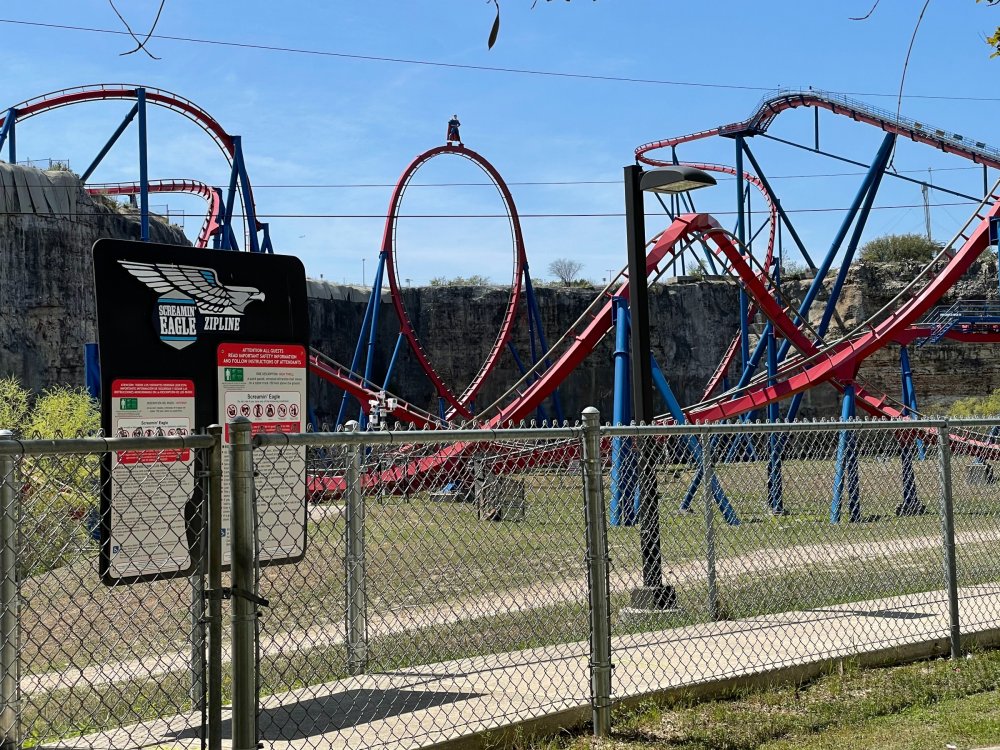 I think I could have made it happen if I pushed hard enough. Ride op was pushing hard, trying to make it work which I appreciated a lot. But it was already so uncomfortable I could only imagine how banged up I would get on the actual ride. Shoulder restraints hit the back of my head when I try to pull them down; have to kind of snake my way into them. Maybe I just haven’t been paying attention, but never heard of raptors being fluffy/tall unfriendly before. Love how beautiful this park is and have loved the city of San Antonio so far. Love all the 90s music they play here! Going to come back tomorrow and try to get on IRat. Park has pretty much emptied out. Surprised they have so many bands playing. They’re attracting less than a dozen people per show. Seems like they could have used that money to open 1 or two more rides. Got on Superman, Goliath, Pirates, Road Runner, and the train. Didn’t fit on WW and didn’t want to do Pandemonium solo. No other coasters open (didn’t check the kiddie coaster). Road Runner ride op said this is the slowest she’s ever seen on that ride. Bit of a disappointment, but will try again tomorrow.