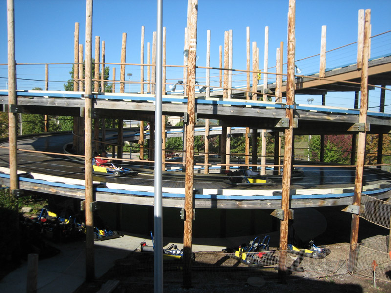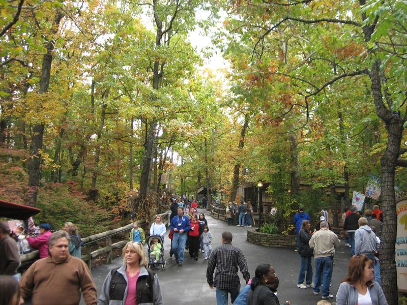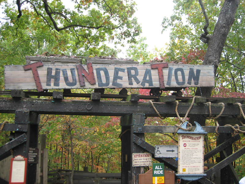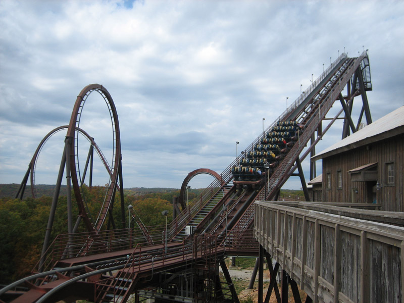 For fall break (all one day of it) my girlfriend and I went to Branson as its close, different, and cheaper than Chicago. We drove from St. Louis to Branson with relatively few incidents and arrived at the Branson Tourism Center / Gas station to buy see what they had show wise and buy some tickets. We wanted to see something amazingly hokey to fit the Branson atmosphere but Dolly Parton's Dixie Stampede was sold out so we bought tickets to see the New Shanghai Circus. We also bought tickets to SDC here, which is a really good deal as you get a two day pass for the price of one day admission if you buy your tickets from them. Sweetness! Right after trying to leave there my battery decided to die so we found a nice local who jumped our car so we could buy a new battery. After that good hour of fun we went to the outlet malls to see if there were any amazing deals and then headed to one of four of The Tracks in Branson (they're a go-kart place called The Track). We rode the lumberjack which is a large wooden go-kart track with somewhat slow karts which shake you to death (still not as bad as Psyclone). Soon after that we checked into our hotel and went to a Chinese Buffet before our show. If you are in Branson I would highly reccomend the New Shanghai Circus as they do some amazing stuff. They had one act where one kid juggles this little kid with his feet, flipping him upside down while people jump between them. If I had a picture it would help describe this, but they weren't allowed. Day 2: This day was entirely devoted to SDC, which is an awesome park with a very friendly atmosphere. The park seems to have tried to save every tree they could as they are everywhere in the park giving it a nice atmosphere. Also the theming was impeccable compared to what I was expecting. The craftsmen really added to the atmosphere and the combination of all of this made it impossible to find anything in the park without a map since you can't see anything. After finding out that Powder Keg was closed we rode WildFire a few times and became amazingly confused after going on Fire in the Hole without knowing what a baldknobber was. We then made a really dumb move by going on American Plunge in October, which was fun but made me cold the rest of the day. While I really wanted to try some of the food from the huge skillets or the cheeseburger soup, my girlfriend is vegetarian and there weren't many veggie friendly places. Luckily funnel cakes are vegetarian so we downed a pumpkin spice funnel cake (wasn't around long enough to get a picture of it), which was delicious. It started to sprinkle so we headed home, stopping at a Mexican restaurant on the way back, but being from Tucson I wasn't too impressed, but it was decent. That night we went to the Branson Landing which looks to be a brand new New-Urbanism condo complex with shops on the bottom and condos on top. As with Branson tradition they tried to be Vegas with a quasi Bellago-esque water/fire show, which was pretty cool. Day 3: Since we had two day passes to SDC we took advantage of that, and rode Powder Keg a few times, did a bit of credit whoring with the kiddie coaster, and rode some of the other rides we had skipped. I was really disoriented after Grandfather's Mansion which had some amazing effects in the bottom floor where we were literally running into walls without trying to (everything is built on an angle). On the drive home we tried to stop at Lambert's (home of throwed rolls) but there was a 2 hour wait (about 4 times longer than anything in the park all weekend), so we ate at Olive Garden on the way home. I hope you enjoyed the novel and the pictures to come!
