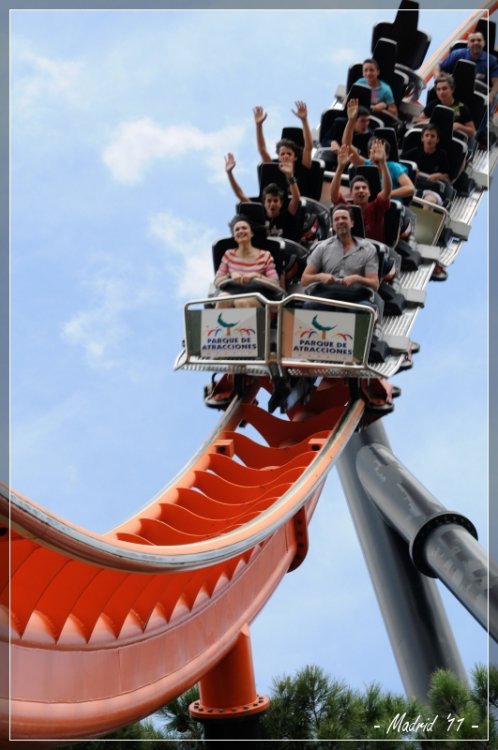 It's been a while, but it was a great weekend. If you have three kids, it's difficult to travel and go to a lot of parks. So every year my wife and i go on a weekend trip somewhere to ride some rollercoasters (i infected her with the virus in 2008. We went on a USA road trip). This is our trip from 2011. I will post more trips later. Very nice custom kiddie Got puked on this one by a kid. I swear he had a Fanta before the ride. Got puked on me twice in Madrid. In WB and PDA...... Nerdshot! Last year got my 250th. Awesome coaster. I love these B and M's Panorama pic from the train station to Madrid Central station. It's a very nice park. After this, i got a massive headache. Loving these lap bars.