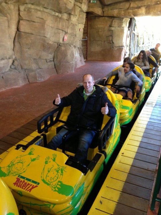 So every year we go on a weekend trip with the guy's. Main reasons : coasters, beer and the proof we never grew up. Normaly we go to Europa park and Heide park. But this year we went to Parc Asterix for a change. Main reason the new B & M. Hope you enjoy, this year it's up to Heide park for the fourth time in "Matendag" history. (1x walibi world, 1x walibi belgium, 4x heide park, 4x europa park, 1x hansa park and 1x parc asterix) proof we never grew up, at the toll booth. There he is! Glad it didn't work. Very nice coaster with out the traditional pre drop. So after the lift hill the fun just happens.... Group pic with our hero's Yes, some people just can't handle there alcohol. On the camping site we started a fire in front of our bungalows and have a great night with some more beers. This is what happens when you start drinking at breakfast.