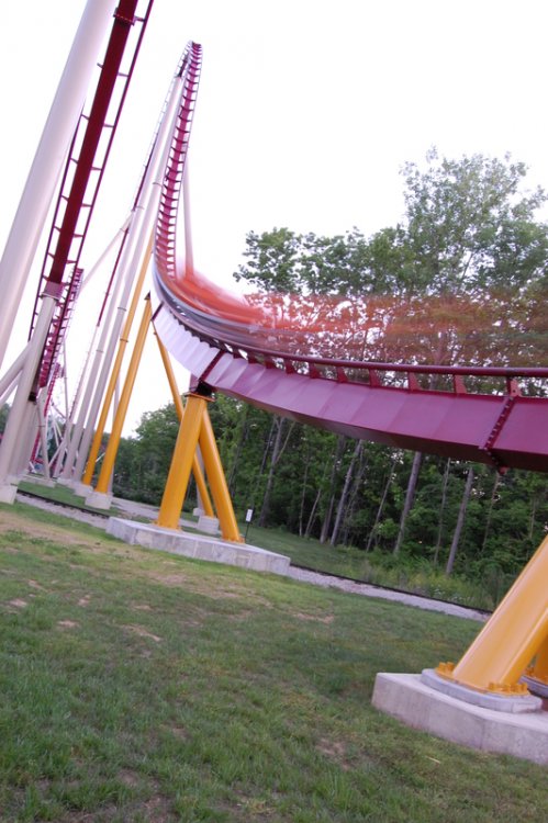 I'll give details in a photo TR tomorrow, but Magnum seems to be hot or cold. It was amazing a few weeks ago, and today the airtime was so intense (same seat) on the return trip it was just wayyyy tooo painful to enjoy. Horrible ride. Rode Millennium and Dragster in the front row for the first time....phenominal. Nothing like those two. Maverick in the back had been shakey before...it's very smooth this year. Wow! Insane ride. Blue Streak is as smooth as Millennium. Gemini rocks. Mantis is meh, Mean Streak is now the Son of Beast of Ohio north, and Disaster Transport was closed again! Oh, also saw a Texas Trip dude there! Steven..Nendig? Something like that! (When someone has a Holiday World shirt on...you know they're an enthusiast!) -