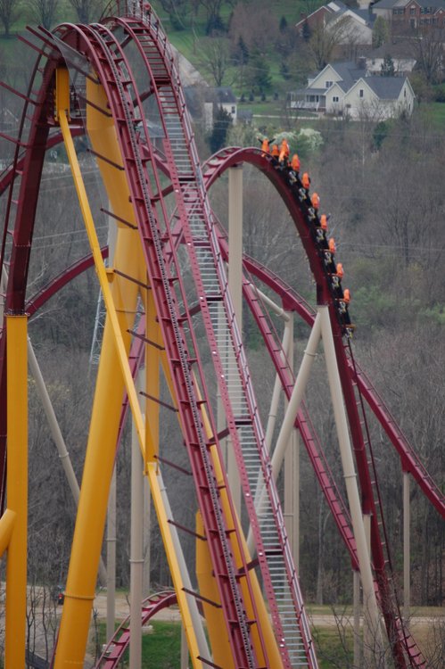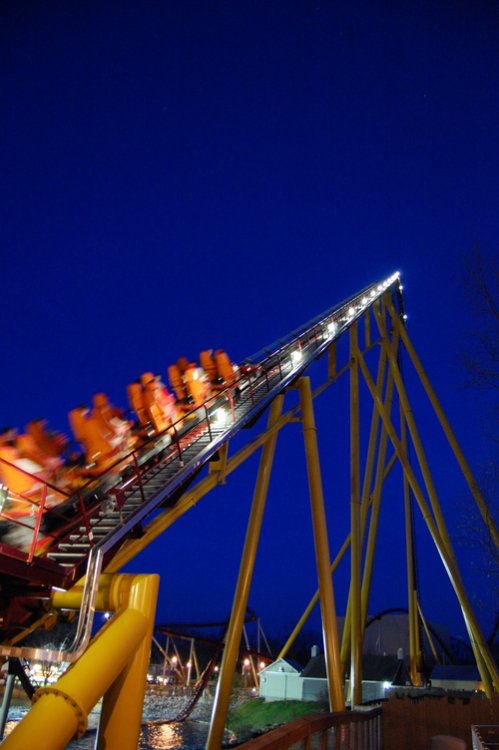 9. Last night was awesome. I met up with Joe (ginzo) and his lazy Liz; and unexpectidly met up with my Haunt buddy Brad! And two of his friends were picked up later in the park. It was open from 5-10. Dead. Rides: Diamondback - 9 Beast - 1 FoF - 1 Racer - 1 Drop Zone - 1 Delirium - 1 Gary! I hope you're reading....I was going to tell you I took some shots of you, but I didn't get to see you after the front seat ride...here's some shots below, feel free to download them! Email me if you want the full pictures! boothe_z09@moeller.org Had a great time riding with you! I'm sure I'll see you later in the season. After last night...I claim Diamondback as my number one. Diamondback gives floater air, forceful floater, and pretty much ejector air..the front, middle, and back all give differet rides, and each of them are incredible. I think I've been in every row now...and every seat is fantastic. Front - Beautiful views, insane airtime over every hill. -First drop kind of lets you fall against the restraint, then gives you airtime. -Second hill just throws you out of your seat. Ejector. -Third hill does the same, just not quite as good. -Hammerhead spins you around -Fourth hill gives ejector. -Pop into MCBR. -Fifth gives Little floater down into the ravine from the MCBR -Sixth is a nice camelback, airtime. -Seventh is a repeat. -Pop airtime down into watersplash -Airtime into breakrun. Middle, row 8. It's right in the middle...constant floater air...it's like your typical B&M hyper with a tase of the front and back. -First drop gives great airtime all the way down. -Second hill lets you float forever. -Third hill does the same, just as good. -Hammerhead spins you around..kind forceful. -Fourth hill gives ejector/forceful airtime. -MCBR. -Fifth gives floater down into the ravine from the MCBR -Sixth is a nice camelback, floater airtime. -Seventh is a repeat. -Pop airtime down into watersplash -Airtime into breakrun. Row 16, as farrrr back as you can go is my favorite. Read below. -First drop is kind of like Millennium Force and a B&M hyper hill. You get ejected. -Second hill just floats you around, and throws you out of your seat. -Third hill does the same, just as good. -Hammerhead spins you around, very good sense of speed and force. -Fourth hill gives ejector. -MCBR. -Fifth gives nice airtime down into the ravine from the MCBR -Sixth is a nice camelback, airtime. -Seventh is a repeat. -Awesme pop airtime down into watersplash -Breakrun. Riding at night is a MUST!!!! I swear it gets better and better every time I ride it...holy crap, I love this ride. Coming off the Beast....what a view. Anndddd brakes. Whheeeee! There's a smile! Looking a bit nervous coming into that splash down.. Gary's ready for his front seat ride...could it beat out Behemoth? Hey CP RULES! Details, details... It's soooo cool to feel the lift pull you up, then get faster and faster I like how the rest of the ride is creepin' in the back In the back seat, you get a generous mist. Nerdddd shotttt Gold passers. Paul was there. Don't forget to throw breadcumbs! Auto industry is investing well!