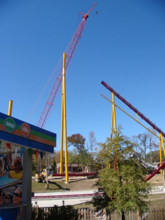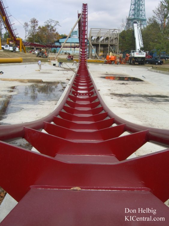 215' drop at a 74* angle followed by 7 more airtime hills sounds good enough to put it above Millennium! They are getting ready to top off the lift.. Can you spot the new piece? Looking toward te construction Already getting set for a new Beast entrance as the final helix goes in -