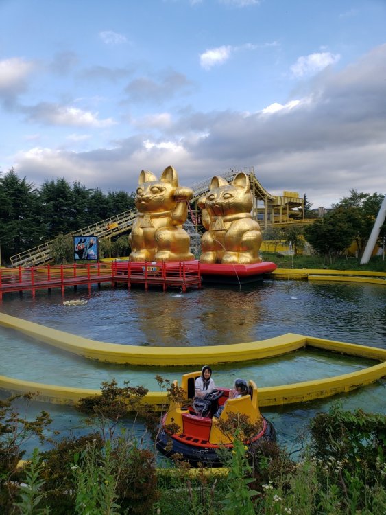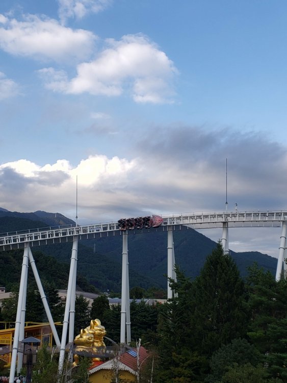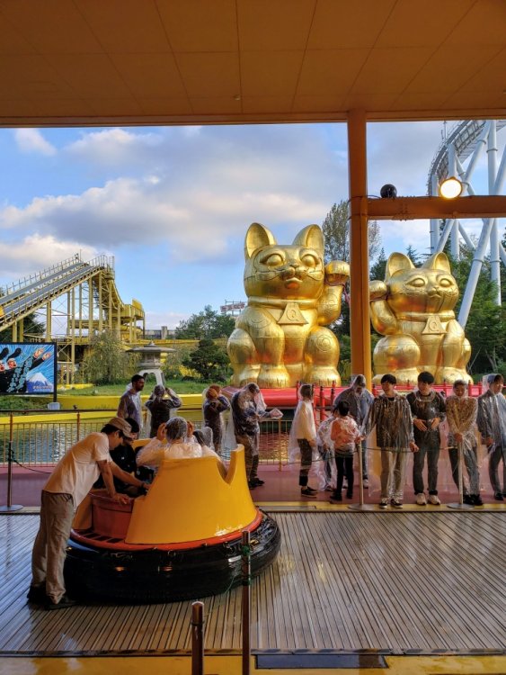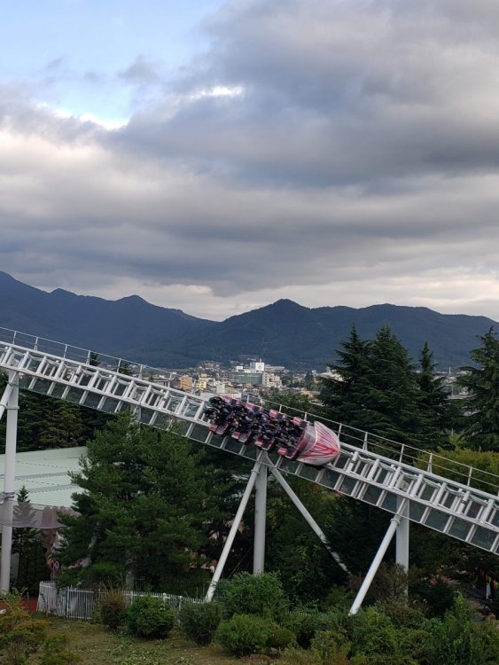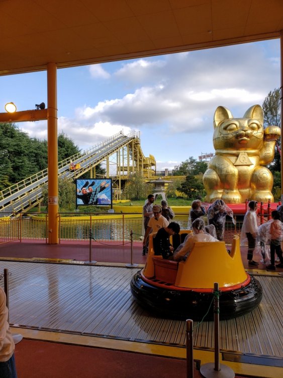 Wednesday, October 9th! Fuji Q time! Anyone who has read TPR Japan updates going back to the beginning of TPR should gag and shudder when they hear the words "Fuji Q" for so many reasons. I honestly was not planning to go to Fuji Q because it just seemed too risky. Even a week before visiting the weather forecast just always seemed iffy and a wasted day in Japan was just something I didn't want to risk. But. I thought about DoDoDonpa, Eejanaika, and Takabisha and the idea of being so close to Mt. Fuji and I started to come around. I went in listening to everything Elissa and Robb had to say, had low expectations, and it turns out my visits to different temples and shrines in Tokyo the days before paid off. We had a pretty great day as far as Fuji Q visits go. Let's be real here - outside of the main coasters, there were still lots of closed rides and they had just closed the mouse for good. I don't care about missing them but I do care about how much I have to pay to get into the park. This park is very small. It's a slab of concrete except for the new European entrance. The setting is fantastic up in the mountains near Mt. Fuji. The food was great! Operations were just fine! We were able to pick seats, there wasn't any down time on rides that opened with the park, and the park announces any early closures. We got very lucky this visit. I'm not taking that for granted at all. After riding DoDoDonpa and Eejanaika, I would make a return visit for them even if everything else was closed. I think that highly of them. DoDoDonpa 100% lived up to the hype and the launch is unlike any other coaster element (airtime, zero g, lateral, etc) in that it is just best described as pure bliss. Following the launch the dip down provides a great pop of air and the loop pulls some serious g's at the bottom while giving some hangtime at the top. Since the trains use real tires it is bouncy at times so depending on your tolerance that will effect how much you like it. It's not a jackhammer by any means. Fujiyama was very okay in the middle when we tried to play it safe on our first ride. Our final ride in the back row was fantastic. My thinking is since the back of the train isn't THROWN into those weird turns and elements towards the middle/end like the front of the train is there just....wasn't any joltyness or roughness. It was excellent. Takabisha I'm a massive fan of. I rode this right after DoDoDonpa, the strongest launch in the world. I really expected Takabisha's launch to feel like a booster bike. Nope, it still kicked my ass. Smooth, too. Seinfeld fan visits Japan. Great morning for a walk! Through these doors are.... Your opportunity to win a full sized can of Pringles. The views when we arrived at Fuji Q were stunning. Snowcap-less Mt. Fuji. Gotta look my best for FujiSan. At the back of the park you'll find Eejanaika, the 2nd S&S 4D I have never been on a 4D before so I had no idea what to expect. Heading up the lift to be chucked off a cliff into oblivion. This ride is an experience and now I am on an insatiable quest to ride the others! sumimasen Ain't it great? Eeeeeeejainaika! Eeeeeeejainaika! Eeeeeeejainaika! Eeeeeeejainaika! My first ride, the restraints were not as tight as they could be so next ride I made sure to pull as tight as possible because whew, you get absolutely tossed in every way possible! The coasters weren't scary enough for me, but the Halloween decorations did the trick. When Fujiyama opened in 1996 it was the world's tallest roller coaster at 259 feet Roller coasters + Japanese Beer = ZB Heaven Best view from a lift! LAUNCH TIME!!! First ride in the middle was okay, but our last ride in the back was fantastic. I wish everyone had a spin on Fujiyama like we did! The trains looked so uncomfortable, but they were just fine! As you can see the weather can change any second here. Thankfully there was no rain and the rides ran all visit. 高飛車 Takabisha Fuji Q had these awesome selfie spots where you just set up your camera timer and go stand to take a photo! Hayyyy Beyond vertical 121* drop. I'm not really a fan of these extreme beyond vertical drops, I'd rather have a simple straight down. It's so smooth! Taking in FujiSan upside down is wild PUSH HARDER!!! CRAP OUT THAT NEW 2021 RMC! Eejanaika has turned me into a 4D addict, now I need to go to SFMM and Dinosaur Park in China to try them all Similar to DoDoDonpa's launch, I'm just speechless or screaming the whole ride. Make sure you hold on tight! The structure is massive. Kitty will soak you. See how literally everyone is wearing ponchos? Learn from the locals. See! You know how Flight of Fear has this whole pre-show-queue story thing? So did this ride. Instead of aliens it's about angry cats and flooding. I swear at one point you're sideways. This was wicked!! Sneaking through the massive spider webs to get some great shots. DoDoDonpa's massive loop. It's an excellent replacement for the violent airtime hill that (I never experienced) was there before. Loved this WAY more than I thought! It's pure bliss. Location is just the icing. Did you know this has fire at night? Strap your flaps in everyone, we're going on a quick little photo shoot here. Engage rainbow tunnel! See! Fire!! Some cool relics they had out! Moonsault Scramble! Wow, what a trip. What an unexpectedly amazing start to our Japan trip! Eyes here! Fujiyama O-Shiri Crew! The back seat is AMAZING!