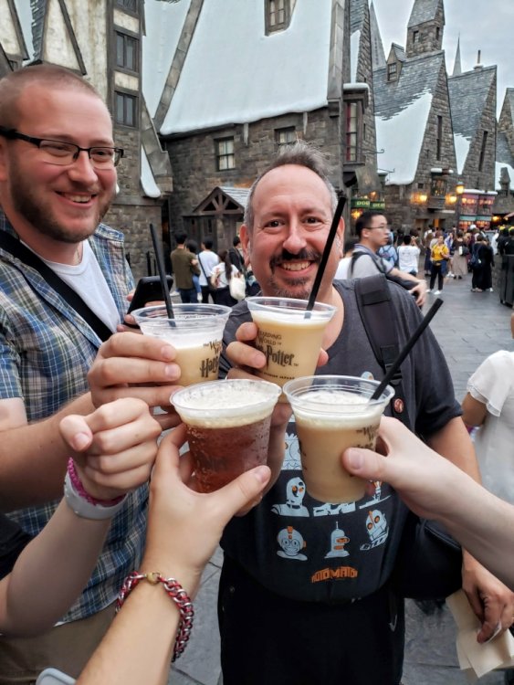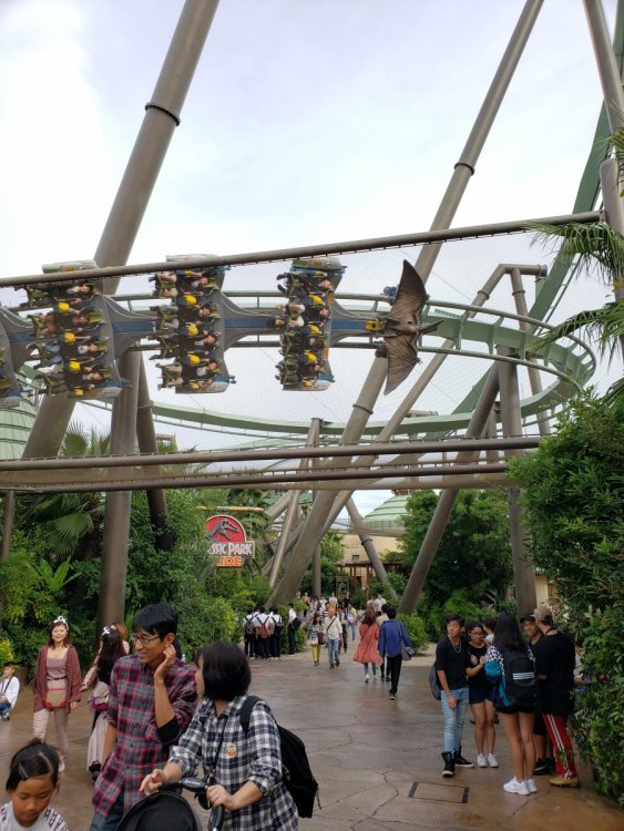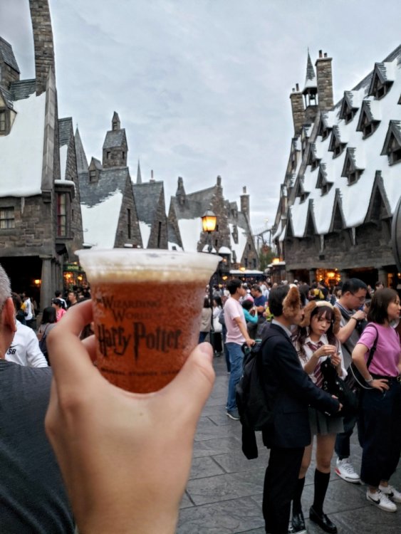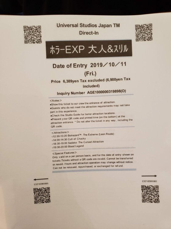 Hey everyone, hope the week is going well! Thursday, October 10th! You would think most of us would be pretty wiped out from a loooong day at Fuji Q (up at 4am-bed at 11ish, all well worth it) but were brimming with excitement since we were getting on the Shinkansen for the first time this trip. Osaka is the destination for Universal Studios Japan. Oh, and there’s potentially a massive typhoon headed to Osaka, too! Robb and Elissa did an incredible job keeping us up to date on how to a) stay safe b) best use our time c) predict how Universal will react. We were all patient and I think everyone had a great plan of attack.Our group, who had never been to Universal Japan before, decided to buy an evening ticket for Thursday night just in case Universal decided to close early on Friday (the storm was either going to hit Friday evening or Saturday). While I was bummed to lose a half day of just exploring Osaka doing non park stuff, I was way more excited with the opportunity for more time at Universal and more HHN! FIRST! We were set up so well by R&E. When we arrived at the fantastic Universal hotel, our rooms were not going to be ready for a couple hours. It was lunch time so that gave us the chance to get something to eat and more importantly… get typhoon rations! Just in case we lost power/weren’t able to find stores open when the storm hit. We were going to be ready for a day inside the hotel all day. There was a grocery store, 7/11, Family Mart/Lawson right there in the Universal City Walk area so it was incredibly easy to stock up on the necessities! After we got our rations, hotel rooms were ready, and we did a little sampling of our rations to try some fun new snacks, sake, whiskey, beer, and more for happy hour before going into the park! When I say we, it’s Alex, Allison, Jon, bert, William, and we had David and Tabatha with us here and there so it was a solid group! We didn’t have too much of a plan, but we agreed we’d try to get on Flying Dino if we could (since our express pass was later in the day Friday…so if the park closed early we’d pretty much have to eat the cost) do a haunt or two, and just soak in the atmosphere. Here’s how it went! Bert I threw a couple of your photos in here, too. I’ll give more of a breakdown on the rides/haunts in the next full day update. -Zach Universal Japan is amazing for many reasons, but one big highlight was were those who staffed the place! Our friend here saw me with a beer in line and was having fun with making sure I finished my beer before the ride, haha. It's pretty similar to the look and feel of an airplane, but more comfortable =. No bento for me since we had breakfast, but I tried to pick a random drink or snack whenever I had the opportunity. These were similar to fig newtons, but apricot flavor and wrapped in a kitkat wafer. Studying up on our express passes! Really not that difficult once to understand, but unnecessarily difficult in general haha. Thankfully taking a picture of them worked and still scanned so we didn't need to be carrying around newspapers with us. Shinkansen time! Let's get out of Tokyo and go to Osaka! So many delicious bento options... all right in the train station. So convenient! Alex or Allison's chocolate. Not pictured: Sake and beer, haha. They were also having us do this peek-a-boo "SCARY....SURPRISE!" thing which was just so funny given the language barrier. Okay okay let's not eat and drink all of our rations let's get over to the park! TYPHOON HAGIBIS RATIONS! All the necessities. Spicy beef...cheetos... sweet potato sticks, Chicken ramen snacks, and some good 'ol Suntory Whiskey! Hogwarts time! It was kinda of weird experiencing one without Diagon Alley. It definitely feels like it's lacking as far as attractions go, but it's definitely a better Hogsmeade than Orlando because it's more secluded and the black lake is cool, too. It feels like there is something missing here.. Butterbeer! The only non alcoholic beverage I had this evening, haha. I'm weird I like the regular vs frozen. It's just as fantastic as the Orlando version! Such a great ride and it was fun to ride with some that had never experienced it before. At night it looks even more stunning! Beautiful day... we were still in shirt + shorts mode in October. Amazing! My 2018 trip to Universal Orlando made me a Potter fan, so during 2019 pre-Japan I read the books. I'm a real fan now so time to celebrate! I found my way to the source! The classic red ale they sell in the other parks and.... a Suntory High Ball! Making our way around to Jurassic Park. The beautiful bridge in the background over the Aji river lets you know you're not in Florida or Orlando! This was my first time riding JP with a working T-Rex finale....EPIC! This is an unacceptable amount of wetness and pressure on my skull. Looking across the pond in the middle of the park. Such a great looking Universal! Chucky was posting a 15 minute wait so it would be our first HHN maze! It was fantastic with so many incredible costumes, well done sets, and unique characters. Don't miss it! You have a mysterious scientist who's sick of all these zombies. Zombies are boring and overdone! Here you are, nice and comfy ready for space. Sorry your space flight is delayed, so let's go all Animal Crossing and go fishing? Fishing for monsters!!! With zombies as bait!!! YES!! You lure the real spooky monsters out of a different dimension andddd....when you exit the ride into the park boom you see all the HHN monsters walking around. You successfully reeled in them big monsters, well done Chip. It's time for our first coaster at USJ! Space Fantasy - Black Hole HHN version By this point we were getting some good news about the weather so we called it a night. We didn't do Hollywood Dream or Dino due to long lines and no express pass, we were going to save all those for the next day. 551 HORAI post-USJ party! Fuuuck so delicious... the shimp shumai turned out to be my favorite! Ca