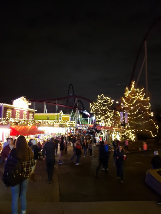 Here's a little TR from 12/26 with some more pictures. Arrived a little before 5 and thankfully we got there at opening because we only waited 15 minutes for Mystic Timbers. By the time we got off the ride the queue was full and nearly overflowing and the staff were giving 2 hour estimates. My mom rode and had an okay time on it. She hadn't been on a coaster since Top Gun nearly gave her a heart attack when she rode with me in probably 2002ish The artisan village around the Eiffel Tower was unexpected. How do I know they were artisan crafts? Well, one of the shop merchants yelled "We are local artisans selling artisnal crafts!!" at us when they overheard us discussing who would buy brooms or log fire grates from Kings Island. The lit up Eiffel Tower is pretty mesmerizing and the park looked good, but there were some really dark spots in the park which made it hard not to bump into people/little kids at times. Without the rides lit up and stuff it was dark! We skipped the tubing hill. It looked like an operational disaster. Skipped Antiques. The queue was full and overflowing down to the arcade. Skipped the train. The line was overflowing. Skipped the bumper cars. We're not that easily entertained. Waited a full queue for the Zephyr/swings, haha. Luckily got on Shake Rattle and Roll before the queue filled up. Waited 20 minutes in the SRL for Mystic Timbers. This event is not for me and I'm not sure I'd suggest going if you have to pay with the same offering next year. I'll gladly go back when there are more attractions and there's no way my family would come back either unless there was more to do. Even my Mom wanted to ride the Viking Ship and Adventure Express, and she hates coasters! She held hear breath after the first drop, haha. But survived. So long pal. I'll miss seeing you but I'm ready for something new and better. New 2019 hotness!! New 2019 decoration hotness!! Sadly, we skipped because the lines were insane. Looked great, though. Probably 80% gold pass members and 100% of those pass holders seemed to have meal plans What's with no blue ice cream? Another reason why this event is not for me. -