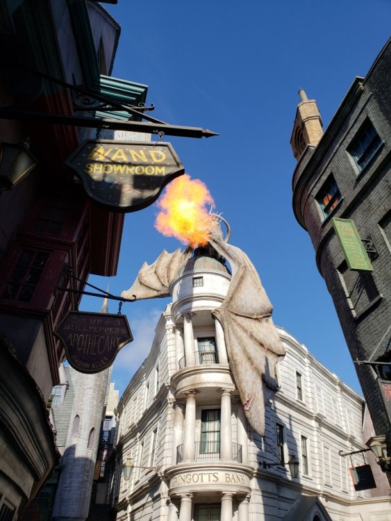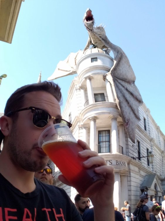I completely agree with this. I spent a few hours at Universal Hollywood about a month back and by the end of it I was completely drained. Even the tram ride is littered with the 3D screens now. Plus their Jurassic Park is being redone so that's one less ride without screens to take a break. Okay I'm glad I'm not the only one that feels that way! It's an odd thing to try and explain. Hey glad to see you survived another Frontier round trip! ~~~~~~~~~~~~~~~~~~~~~~~~~~~~~~~~~~~~~~~~~~~~~~~~~~~~~~~~~~~~~~~ Day 3 I've a lot more pictures than I realized so here we go! Once again we had early entry at 7am which included Fast and Furious + Harry Potter. We never bothered with F&F. We took our time getting some coffee and went to check out the Prop Shop where you could buy cool stuff like the HHN Pizza Fries sign for $100. I'm sorry I didn't take a picture of it, haha. I did take pictures of other cool stuff like the Mummy blue prints. Here we are in the Prop Shop! Look at all this cool stuff. Who needs happy hour deals when you can get these pitchers of margs?! Super cool Mummy details. Original car design? The "traditions" scare zone looked cool during the day and it looked great at night from the pictures I saw! Foreshadowing as today was going to be about trying lots of different drinks! Let's take another spin on MiB while we wait for the other half of the group to show up. Hey, Kay, nah, nah. Come on, man, you-you get a Series Four De-atomizer and I-I get a little - little midgy cricket? As we went to the front to gather the gang, we saw some priceless entertainment. That's right. Popeye - the original multitasker. Smoking a pipe. Dancing with Betty Boop. AND holding a can of spinach!!! What a guy. Why do Floridians wear pants in this weather? I'll never understand. I watched KK for the first time last week after being inspired by seeing all the props - IT WAS AMAZING! I really hope make it into a maze. (I'm sure they've done this already. Have they?) It's lunch time! Let's check out Moe's! Duff, brewed locally, was delicious. So was Dufftoberfest! I honestly liked the ride show more than I anticipated. I expected to hate it due to the non-Simpsons art style. The ride itself made me very dizzy though. So I did not ride it again.. Back over to find more Harry Potter easter eggs! They had the wands, I had the beer. But seriously the Knight bus with the talking head was a really cool interaction. Inside one of the sweet shops. Look how cute these are! One of the ways to have butterbeer. These are adorable too. I'm more interested in the beer though. Dragonscale was delicious!!! Just livin' it up in Diagon Alley. Seeing the fire from all angles was really cool. Check out the light beams! Alright with Dragonscales finished, it's time for another spin on Gringott's. What're you going on about? Let's head down to the vault. Not before some fireworks, of course. The view inside the station/vault. The beginning of the journey into the depths of Gringott's. Lots of cool details all around Diagon Alley. It's impressive how much they packed into a seemingly small space. Putting my dark arts skills to work!!! (it's a joke, I love Disney too. but it was hilarious seeing that in HP area) Time for a quick hop over to IOA to check out Hogsmead and try another beer! We ran through our faves in IOA and needed to head out at an appropriate time to get to Ohana for dinner! While half of the group went to check out VooDoo Donut and other spots, I was finally able to make a stop and try a marg at one of the Margaritaville bars! Cheers to this amazing place. It's mindblowing to think that this place (and the rest of Orlando) is running all day. Every day. Every year. New people. In and out. It's crazy to think about! Overflowing with happiness. And tequila. Holy shit this was strong. So we had dinner at Ohana planned and a stop at Trader Sam's - I was so happy to be on WDW property! It's been ages! I really need to come back to WDW. I have given DL an uneven balance. This place is endlessly entertaining! There is SO much happening it's hard to notice everything all at the same time. I had an IPA from Hawaii. It was incredible. this is what I'm talking about - ALL OF A SUDDEN. MY BARSTOOL. WAS ON THE GROUND! The bartender gave me a booster seat to get back to bar-level This place is the best. Some yummy drinks. Some happy friends. Trader Sam's is a must visit! Ohana is a must visit! The bread, the chicken, the veggies, the pot stickers, the noodles.... all 5 stars! I was thrilled to have a slice of Disney on this trip - even if you can't get to the parks, get to the Polynesian resort and soak in the atmosphere. One more update to go!