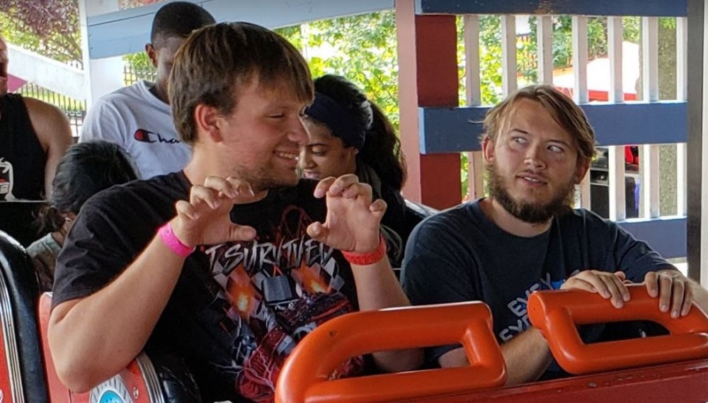 7. Day 7 - Six Flags America Guys I was looking forward to SFA. I'm not joking you. It was a quick visit and I had a plan - ride Wild One, Superman, and check out the weird slides in the water park on a beautiful summer day. Is that the sound of booing because I'm skipping more credits? I have my own priorities. The ex-Tony Hawk themed old school Half Pipe, tube-speed slides without tubes, terrain/woodsy body slides, drop pods, and brand new extreme lazy river seemed much more exciting than a SLC, old GCI, Vekoma Flyer, etc. Plus, all of the slides were included on the Flash Pass! Score! All I need is a couple hours! That plan sounded alluring to Michael, Andy, Allison, and Chase so we all planned to hit up the waterpark after the coasters. First impressions of the park were surprisingly great! We got our Flash Passes, headed over to Superman, and were even given a short cut tip by one of the locals that overheard our conversation. Whaaaaaat is happening? Drake and J Cole was playing through out the park on our walk over. Okay, this is cool. We made a stop at Joker, which was fun! I had been on the indoor and outdoor version of this coaster before so it was nothing new to me. My last name is Boothe. I'm a security booth. Get it? On over to Superman there were 2 trains running and the op was busting his ass. I am pretty sure there were only 2 ops running the ride and they were doing their best. So let's pause for a second. So far: *The GP are friendly *The ops are doing their best *Solid music playing throughout the park Good things happening and I haven't even stepped into this waterpark yet, this is excellent. The Superman op desperately needs a microphone. Six Flags if you're reading this please help the guy out. He had to shout to the whole station his spiel and that's not good for the guests or for the guy's voice. He was being as nice and polite as he could despite the situation. Superman was great! I only rode in the front seat and I thought it maintained its speed well and was more fun than a B&M hyper coaster. Yeah, even with the straight bits and helices. There's just something about those Intamin trains that elevates the ride experience for me. I'm probably in the minority here since the side bars don't effect me so I didn't notice the difference between the regular T bar and the Six Flags T bar. The first drop was great, there was airtime on the second half, and it is smooth.* I didn't ride in the back, where reports were different. Before! After! Come on guys, stick to the front seat Beautiful shot from Robb's video. On over to Wild One I was really starting to think that this park had turned a corner until I stopped to get some water. Oh man, the drinking fountain water was foul. And this was reported in more than one location.Guess I'll stick with Powerade. At this time it was also being reported that the food service was probably the worst experience you could ever encounter, so I planned on having my delicious TPR snacky snacks for lunch when we got back on the bus. Wild One wasn't that bad. It had some funky airtime and didn't kill me, but I had higher expectations since this ride is apparently pretty great when it's running well. The trains were interesting and seemed to have extra cushion in them but it didn't make much of a difference. That was that last ride to check off on the dry side of the park for me, but I stuck with the group for a lap on Ragin' Cajun before we headed to the water park. We're a wild group acting wild on Wild One! Note to self, take more pictures of Chase and Michael next trip "If I don't make it back take care of my camera.." The weird lap bar of the car almost smashed our heads as it came down as we were trying to get in and got stuck in a half open position so they had to bring out this portable car battery to re-open the restraint. I didn't remember that ever happening at SF Great America, haha. Of course we got out brains melted by this spinning mouse. Waterpark time! And this is the part where my Six Flags day started to lose Flags. The main bathroom/changing room was disgusting and it was hard to get privacy to change. I only had to be in there for a minute but even that was too long. I already had my suit on, so I didn't need to change. The changing booths were barely covered up by a shower curtain and most were barely hanging on by 1 or 2 rungs. It probably made it very difficult to change. The locker situation was easy and we were able to put our stuff away quickly and cost effectively before we were ready to slip and slide. Let's put our Flash Pass to use. Oh wait. The kiosk to queue up a slide isn't working. Hmm let's find another one. Oh, this one isn't working either. No help from any type of employee on finding a working kiosk so I guess we'll just have to wait in the regular line. None of the lines looked bad so maybe we won't get on all the slides but it's fine. The new Wahoo River was nothing like they depicted in the announcement: Well, the important thing is that it was clean and refreshing. Maybe they'll add the details later but outside of a few little water buckets and one part with a very tame increase to the flow of the lazy river it was as stripped down and as bland as you can get. The only thing in this attraction that got my heart pounding was when a child near us decided to play opossum and go face down in his inner tube. It's okay, even though he scared the shit out of me and his sister, he was "just playing dead". Hilarious, kid. The drop pods were a walk on and holy crap were these too intense to enjoy. They were not the straight down shot, they were like a corkscrew that tossed you from side to side while scraping your back. I'm pretty sure Allison will never try another because of these Damnit SFA! This day got off to such a great start! We looked on the other side of the waterpark for a working kiosk for Flash Pass because the slide lines were building with no luck, so we enjoyed the wave pool for a bit before