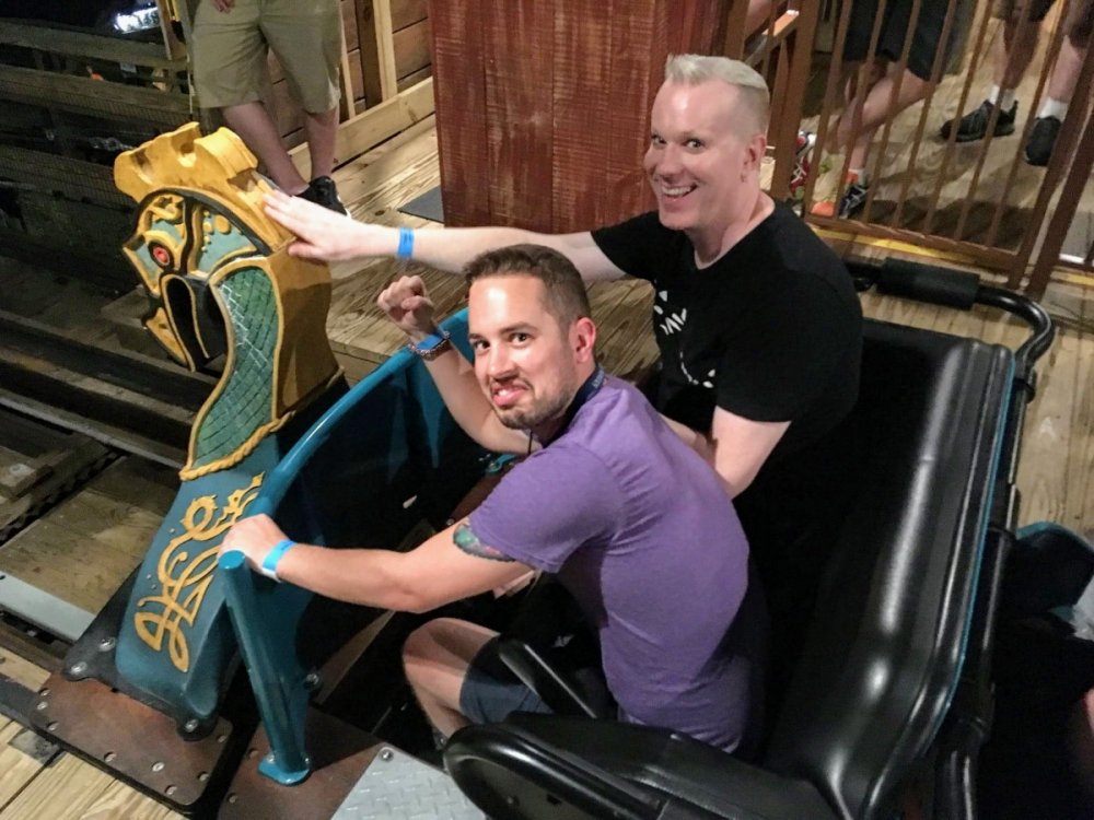You're the pioneer of the "throw yourself off the side of the train, look straight down, and watch the structure of the lift hill disappear beneath you" technique. But that's too long a name so we'll just call it the Zach. I like to think of it as simply being in my element, haha ...combined with the realization of being able to re-ride this incredible coaster with a train full of people just as happy as you are on a perfect summer night -