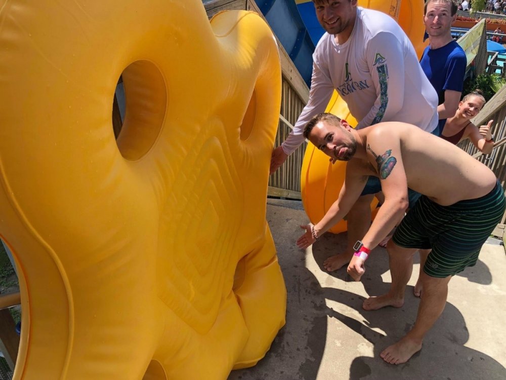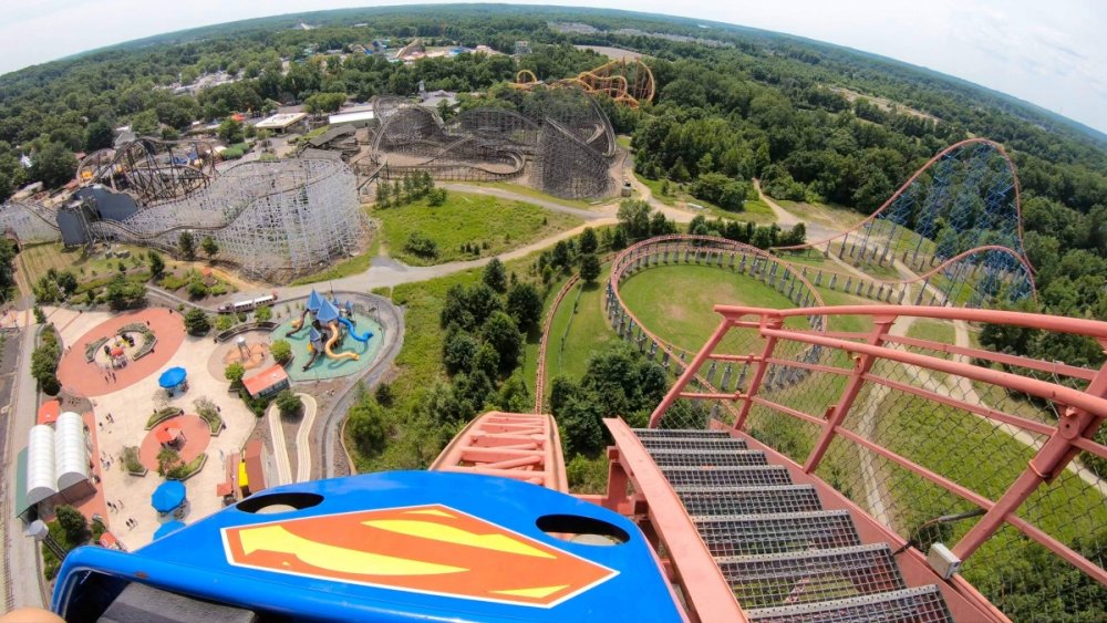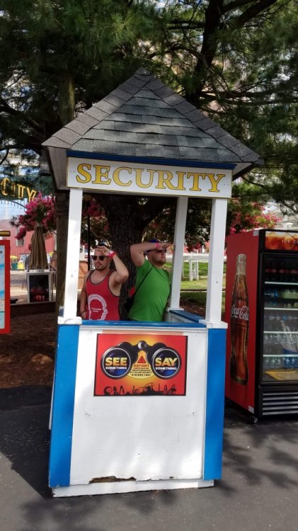 Day 7 - Six Flags America Guys I was looking forward to SFA. I'm not joking you. It was a quick visit and I had a plan - ride Wild One, Superman, and check out the weird slides in the water park on a beautiful summer day. Is that the sound of booing because I'm skipping more credits? I have my own priorities. The ex-Tony Hawk themed old school Half Pipe, tube-speed slides without tubes, terrain/woodsy body slides, drop pods, and brand new extreme lazy river seemed much more exciting than a SLC, old GCI, Vekoma Flyer, etc. Plus, all of the slides were included on the Flash Pass! Score! All I need is a couple hours! That plan sounded alluring to Michael, Andy, Allison, and Chase so we all planned to hit up the waterpark after the coasters. First impressions of the park were surprisingly great! We got our Flash Passes, headed over to Superman, and were even given a short cut tip by one of the locals that overheard our conversation. Whaaaaaat is happening? Drake and J Cole was playing through out the park on our walk over. Okay, this is cool. We made a stop at Joker, which was fun! I had been on the indoor and outdoor version of this coaster before so it was nothing new to me. My last name is Boothe. I'm a security booth. Get it? On over to Superman there were 2 trains running and the op was busting his ass. I am pretty sure there were only 2 ops running the ride and they were doing their best. So let's pause for a second. So far: *The GP are friendly *The ops are doing their best *Solid music playing throughout the park Good things happening and I haven't even stepped into this waterpark yet, this is excellent. The Superman op desperately needs a microphone. Six Flags if you're reading this please help the guy out. He had to shout to the whole station his spiel and that's not good for the guests or for the guy's voice. He was being as nice and polite as he could despite the situation. Superman was great! I only rode in the front seat and I thought it maintained its speed well and was more fun than a B&M hyper coaster. Yeah, even with the straight bits and helices. There's just something about those Intamin trains that elevates the ride experience for me. I'm probably in the minority here since the side bars don't effect me so I didn't notice the difference between the regular T bar and the Six Flags T bar. The first drop was great, there was airtime on the second half, and it is smooth.* I didn't ride in the back, where reports were different. Before! After! Come on guys, stick to the front seat Beautiful shot from Robb's video. On over to Wild One I was really starting to think that this park had turned a corner until I stopped to get some water. Oh man, the drinking fountain water was foul. And this was reported in more than one location.Guess I'll stick with Powerade. At this time it was also being reported that the food service was probably the worst experience you could ever encounter, so I planned on having my delicious TPR snacky snacks for lunch when we got back on the bus. Wild One wasn't that bad. It had some funky airtime and didn't kill me, but I had higher expectations since this ride is apparently pretty great when it's running well. The trains were interesting and seemed to have extra cushion in them but it didn't make much of a difference. That was that last ride to check off on the dry side of the park for me, but I stuck with the group for a lap on Ragin' Cajun before we headed to the water park. We're a wild group acting wild on Wild One! Note to self, take more pictures of Chase and Michael next trip "If I don't make it back take care of my camera.." The weird lap bar of the car almost smashed our heads as it came down as we were trying to get in and got stuck in a half open position so they had to bring out this portable car battery to re-open the restraint. I didn't remember that ever happening at SF Great America, haha. Of course we got out brains melted by this spinning mouse. Waterpark time! And this is the part where my Six Flags day started to lose Flags. The main bathroom/changing room was disgusting and it was hard to get privacy to change. I only had to be in there for a minute but even that was too long. I already had my suit on, so I didn't need to change. The changing booths were barely covered up by a shower curtain and most were barely hanging on by 1 or 2 rungs. It probably made it very difficult to change. The locker situation was easy and we were able to put our stuff away quickly and cost effectively before we were ready to slip and slide. Let's put our Flash Pass to use. Oh wait. The kiosk to queue up a slide isn't working. Hmm let's find another one. Oh, this one isn't working either. No help from any type of employee on finding a working kiosk so I guess we'll just have to wait in the regular line. None of the lines looked bad so maybe we won't get on all the slides but it's fine. The new Wahoo River was nothing like they depicted in the announcement: Well, the important thing is that it was clean and refreshing. Maybe they'll add the details later but outside of a few little water buckets and one part with a very tame increase to the flow of the lazy river it was as stripped down and as bland as you can get. The only thing in this attraction that got my heart pounding was when a child near us decided to play opossum and go face down in his inner tube. It's okay, even though he scared the shit out of me and his sister, he was "just playing dead". Hilarious, kid. The drop pods were a walk on and holy crap were these too intense to enjoy. They were not the straight down shot, they were like a corkscrew that tossed you from side to side while scraping your back. I'm pretty sure Allison will never try another because of these Damnit SFA! This day got off to such a great start! We looked on the other side of the waterpark for a working kiosk for Flash Pass because the slide lines were building with no luck, so we enjoyed the wave pool for a bit before ch